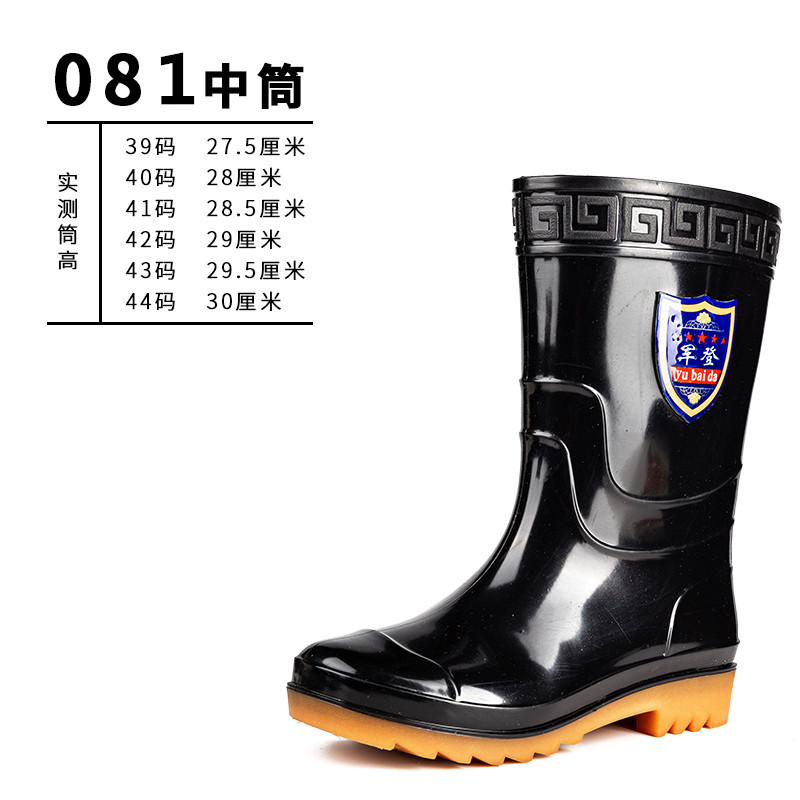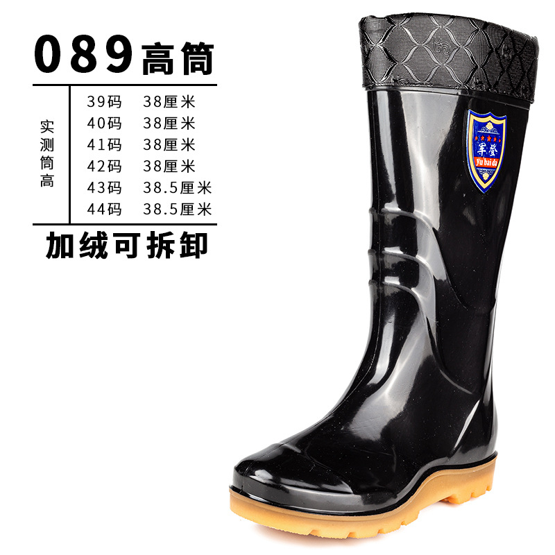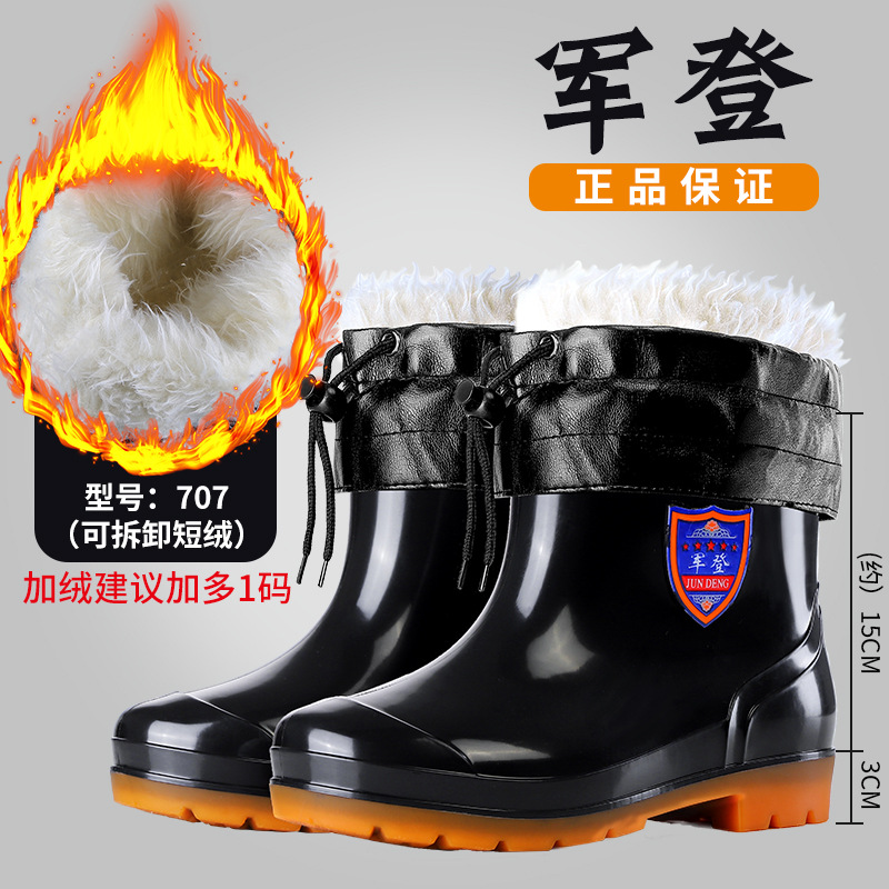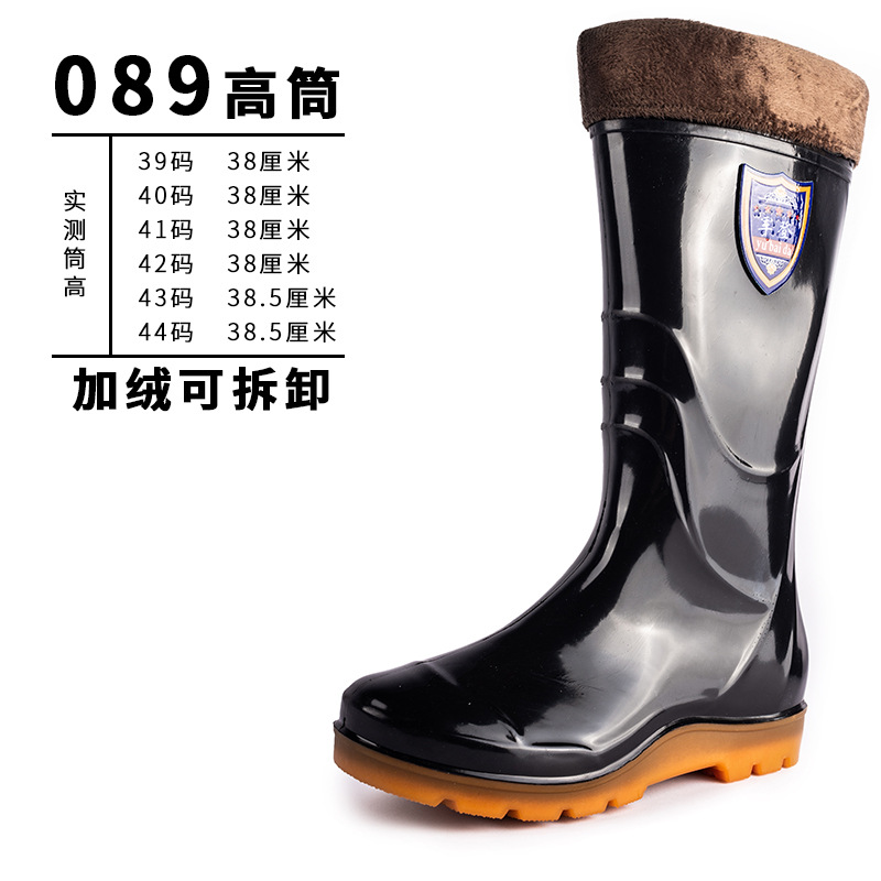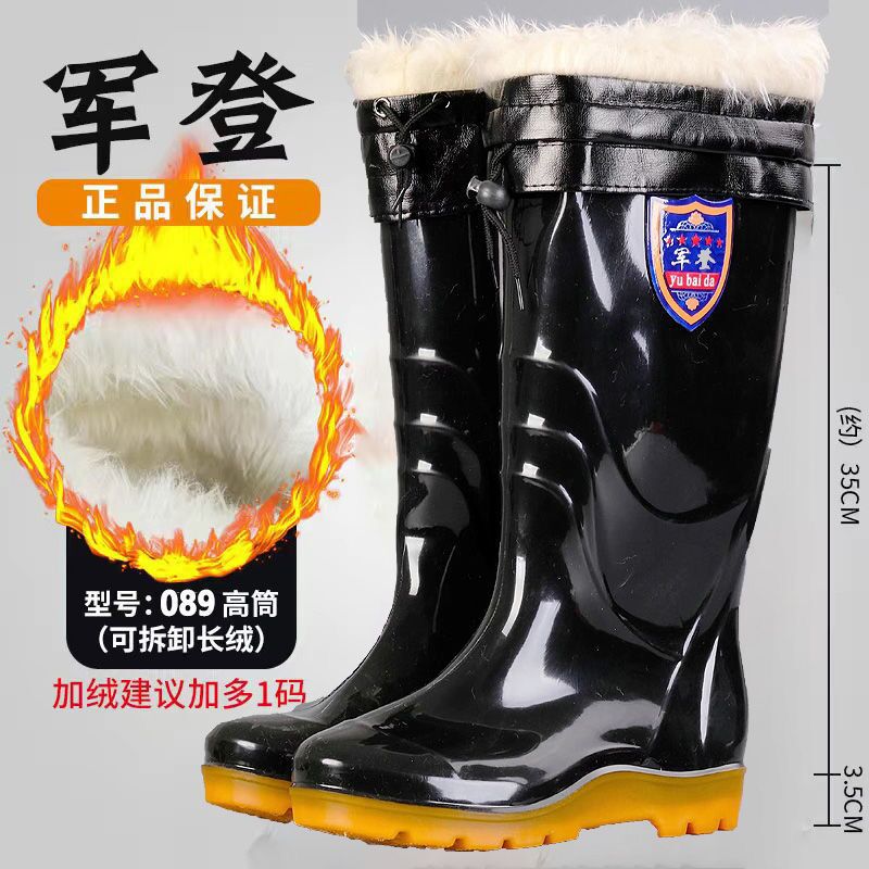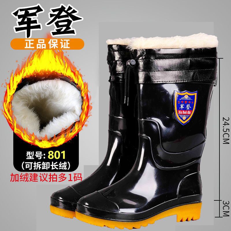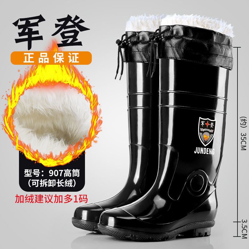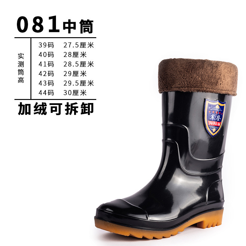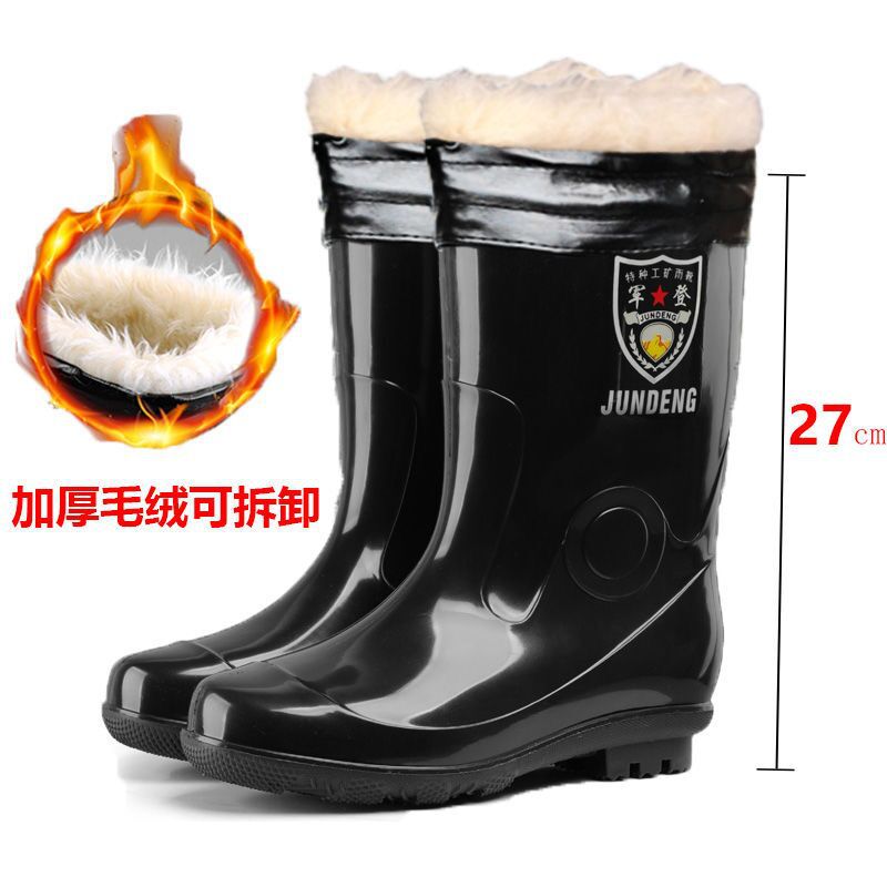 사계절 두꺼운 봉제 높은 배럴 장화 남자의 중간 배럴 높은 배럴 기모 장화 한국 스타일 긴 배럴 주방 고무 신발 남성용