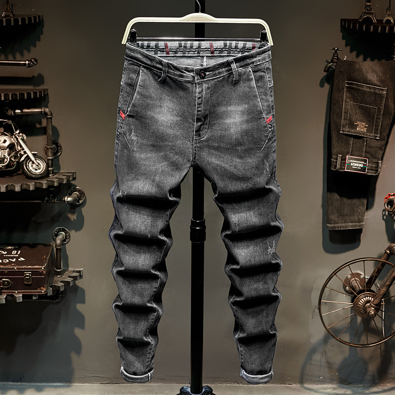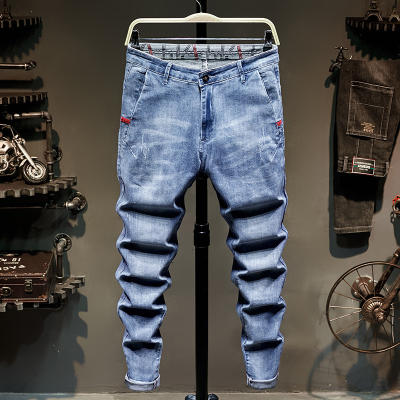 봄과 가을 남성 청바지 2021 새로운 한국 유행 슬림핏 스키니 팬츠 청소년 남성 캐주얼 청바지스토어 가기