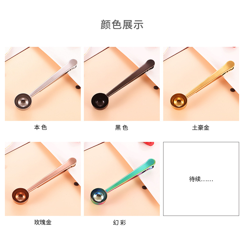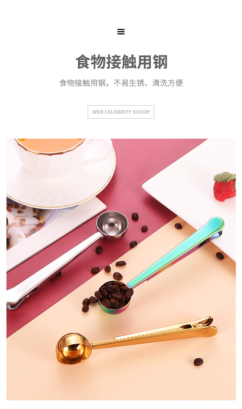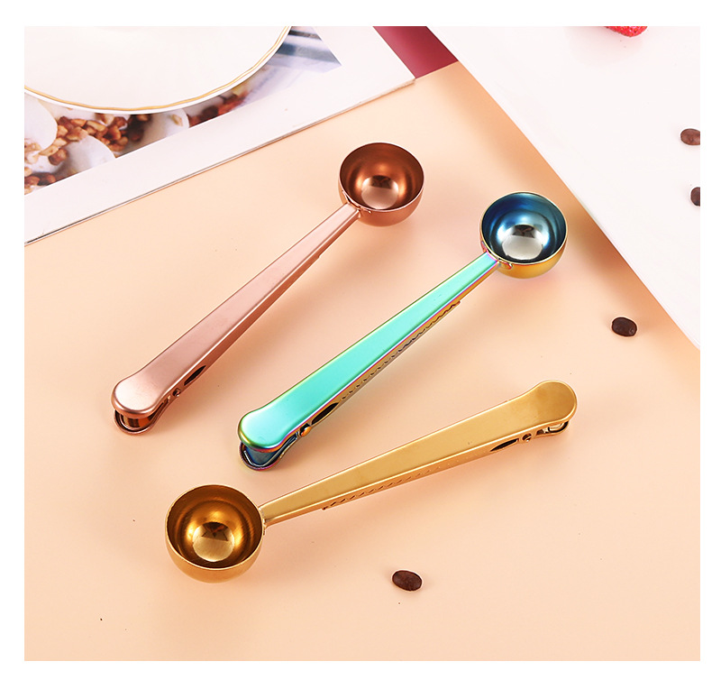 클립이있는 스테인레스 스틸 커피 스푼 계량 스푼 다기능 식품 밀봉 클립 분유 스푼 식품 가방 밀봉 클립