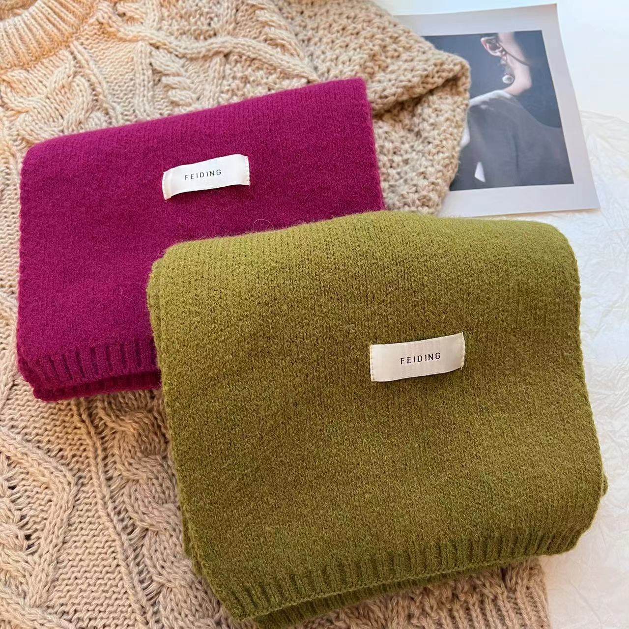 2022 한국 동대문 새로운 스카프 여자의 겨울 단색 패션 간단한 편지 스티커 학생 커플 스카프스토어 가기