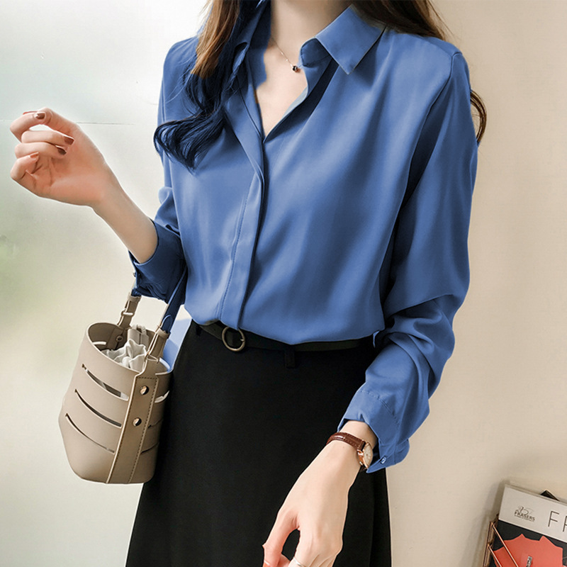 2023 봄과 여름 새로운 한국 스타일 우아한 단색 셔츠 여성용 긴팔 탑 심플 OL 쉬폰 셔츠 베이스 셔츠 트렌디스토어 가기