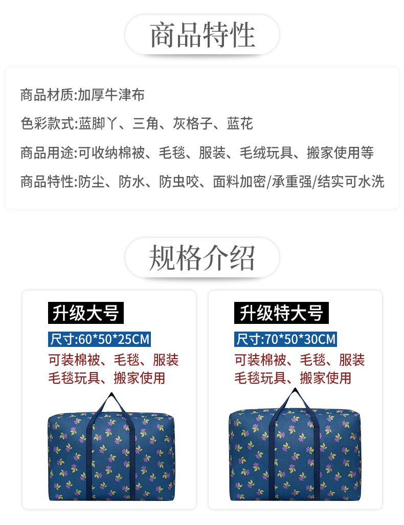 두꺼운 옥스포드 천 이동 가방 대용량 체크 수하물 가방 휴대용 여행 가방 발수 방진 보관 가방스토어 가기