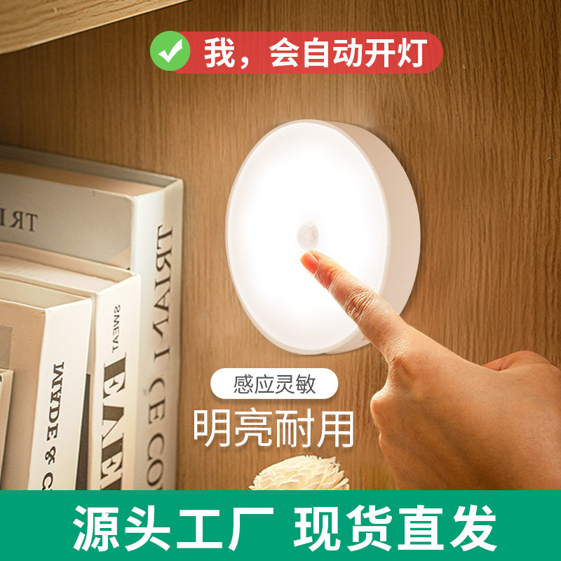 LED 야간 조명 USB 충전식 캐비닛 라이트 학생 기숙사 침실 침실 라이트 라운드 인체 유도 야간 조명스토어 가기