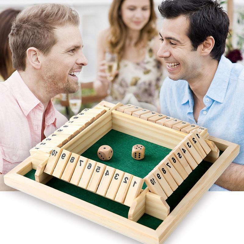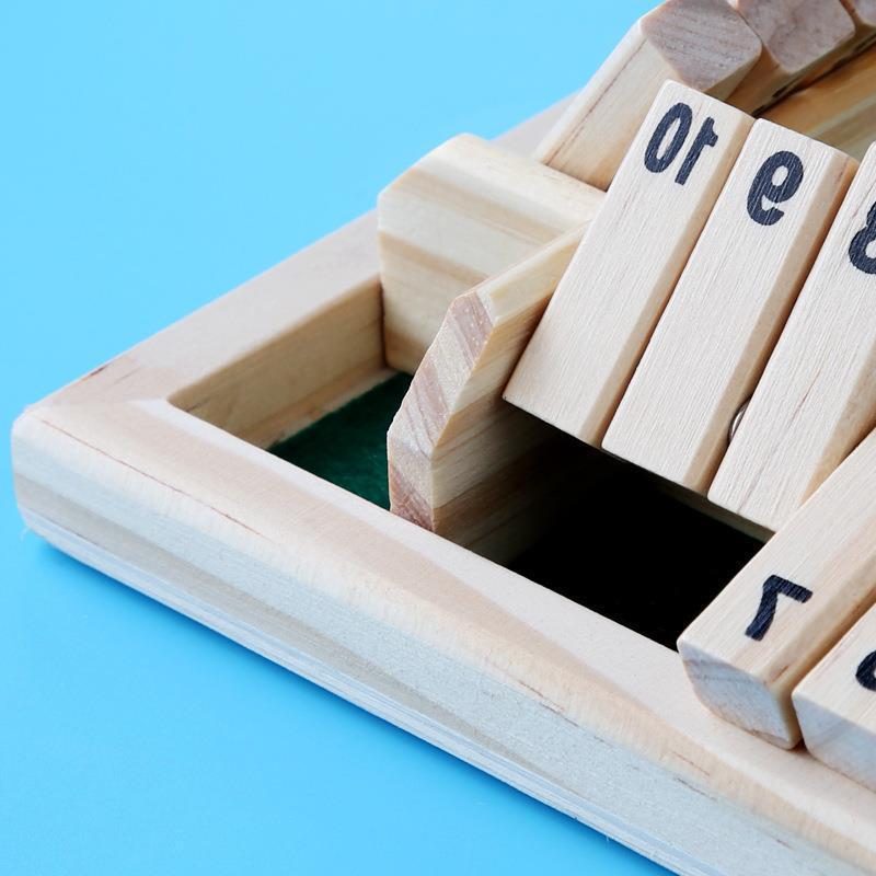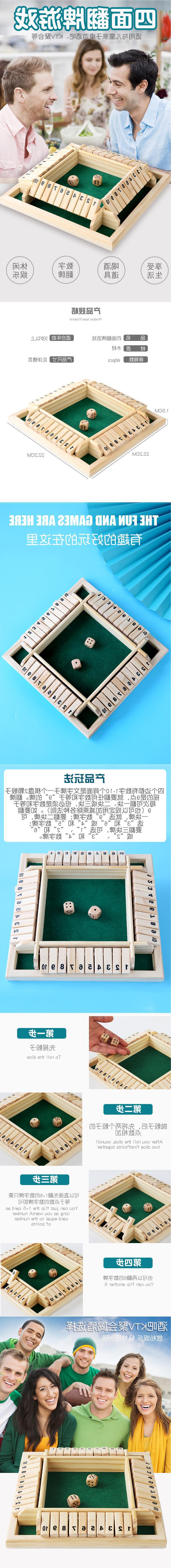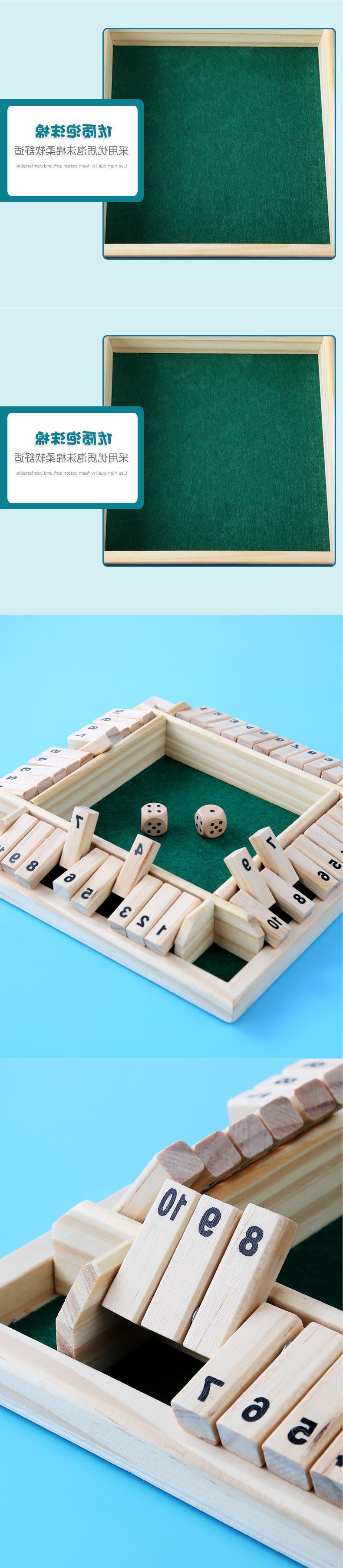 玩法一:按所抛骰子的数字翻上木牌,可以是几张牌之和,最后不能按骰子的数字翻牌者为输。
