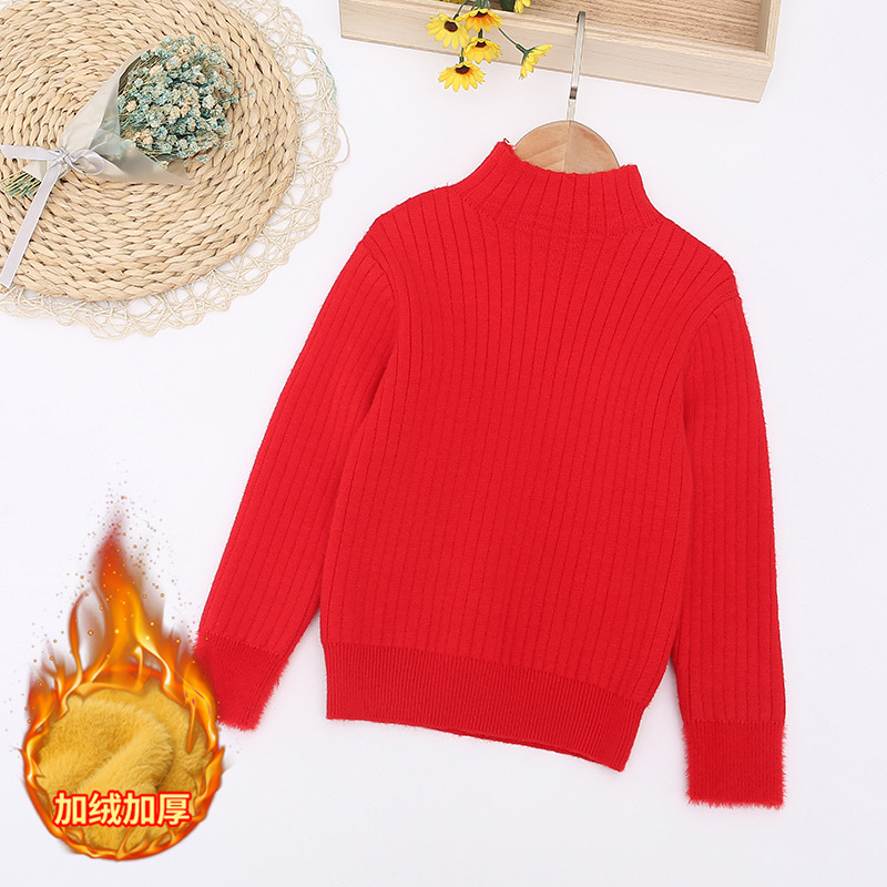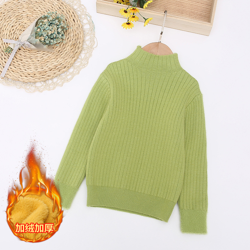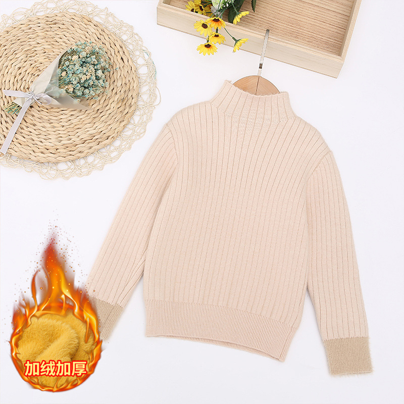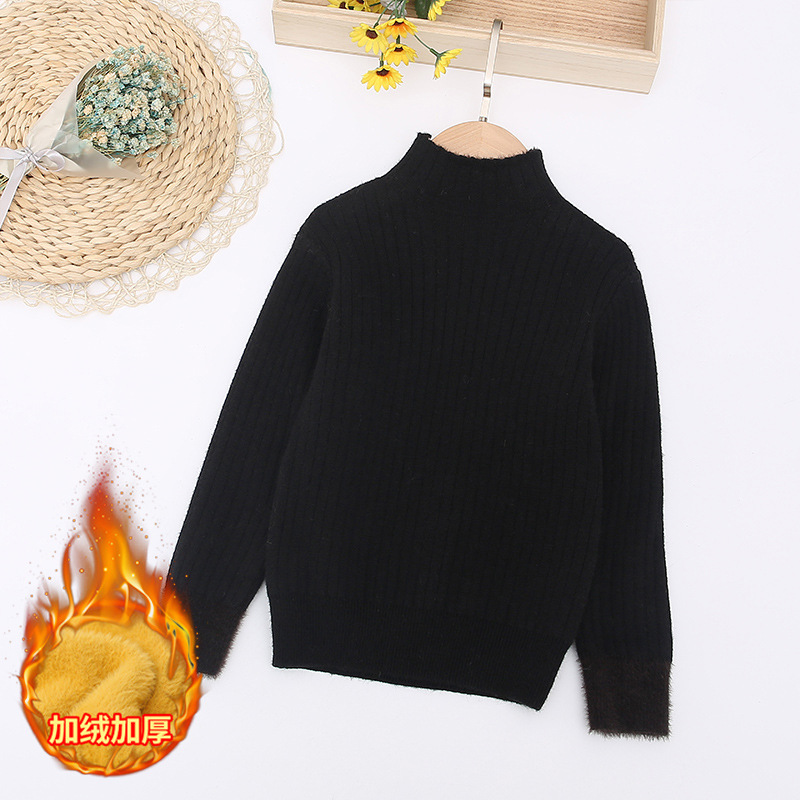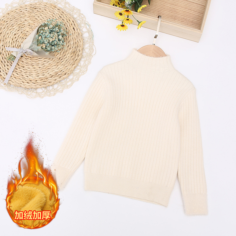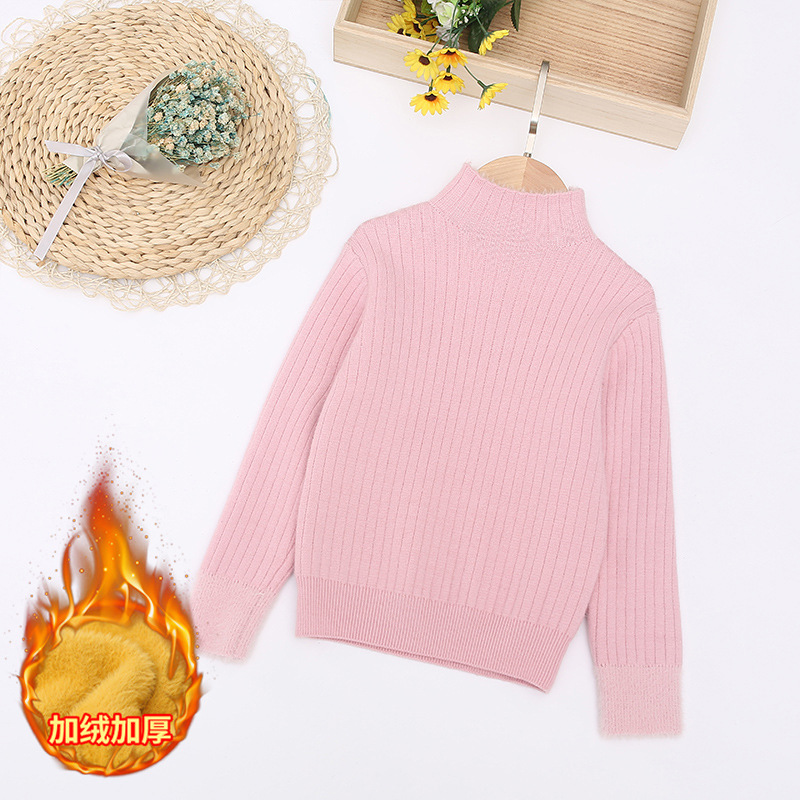 여아용 스웨터 2025 신상 겨울옷 플리스 안감 두꺼운 이너웨어 일체형 플리스 반터틀넥 니트 긴팔 상의