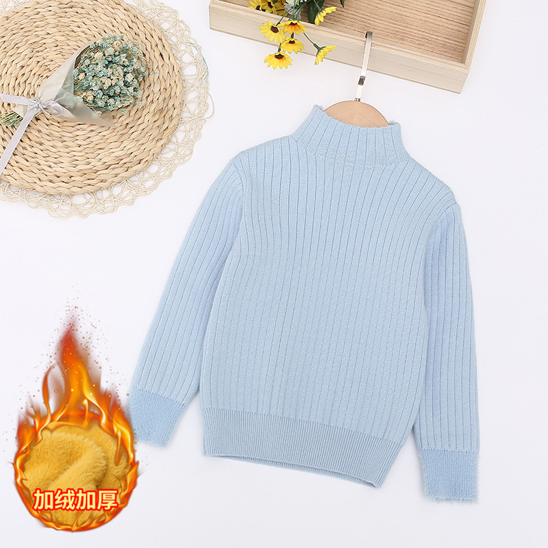 여아용 스웨터 2025 신상 겨울옷 플리스 안감 두꺼운 이너웨어 일체형 플리스 반터틀넥 니트 긴팔 상의스토어 가기