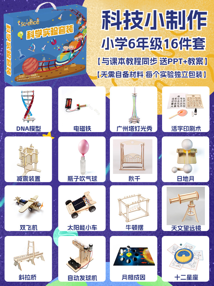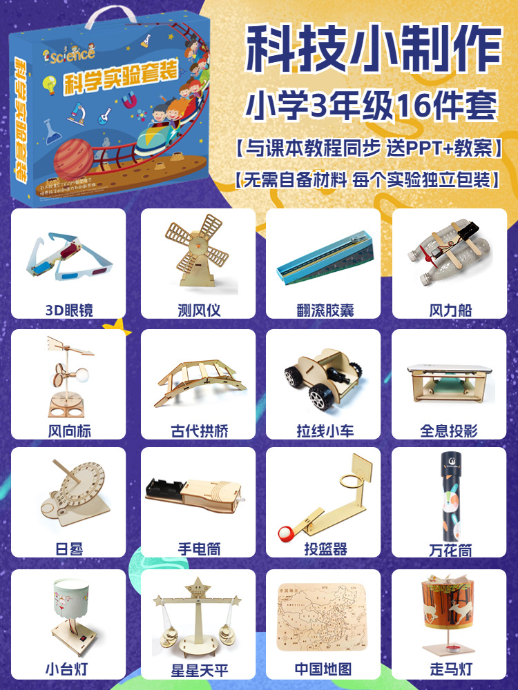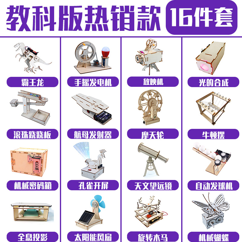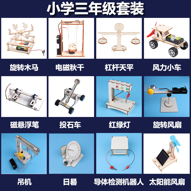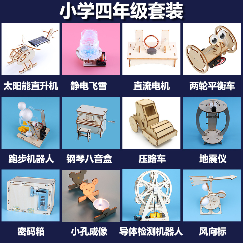 어린이 과학 및 물리학 실험 세트 초등 학생 과학 및 기술 소규모 생산 DIY 나무 증기 장난감 제조 업체 도매스토어 가기