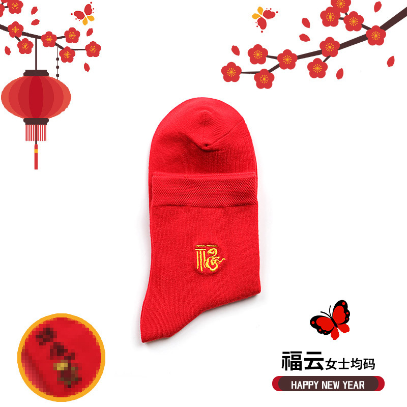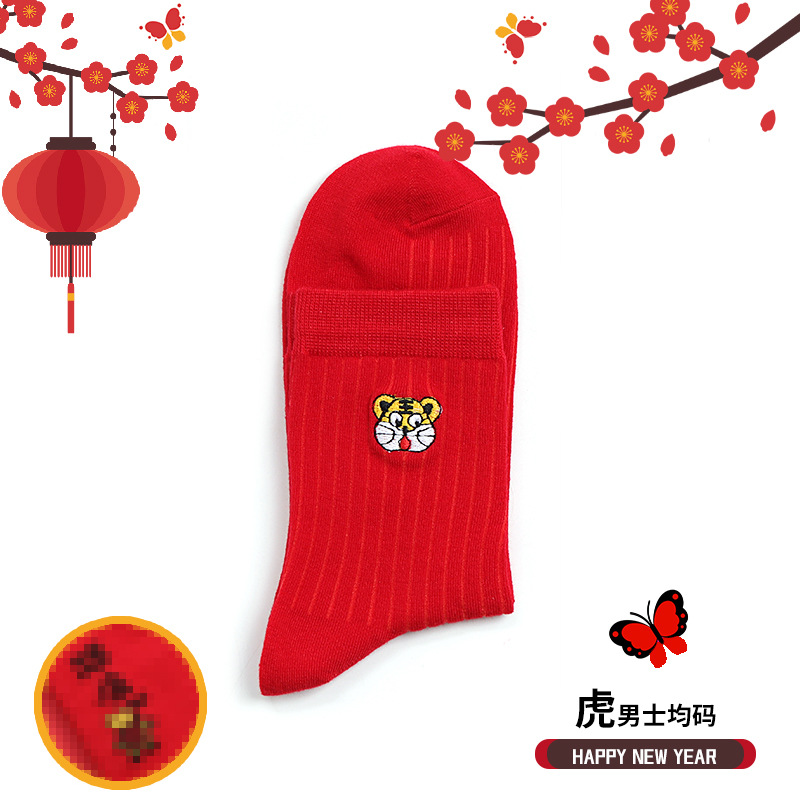 가을과 겨울 새로운 빨간 양말 자수 용과 피닉스 Chengxiang 양말 남자와 여자 빨간 양말 새해 만화 토끼 양말스토어 가기