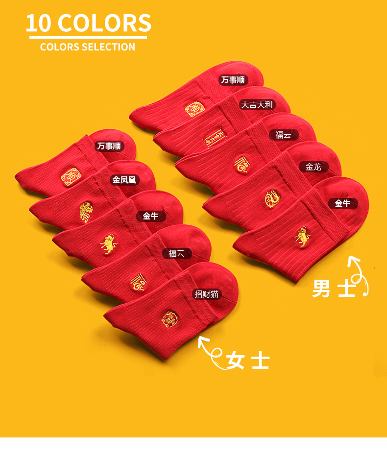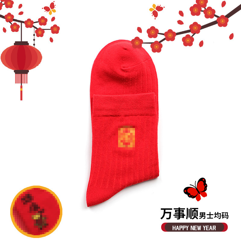 가을과 겨울 새로운 빨간 양말 자수 용과 피닉스 Chengxiang 양말 남자와 여자 빨간 양말 새해 만화 토끼 양말