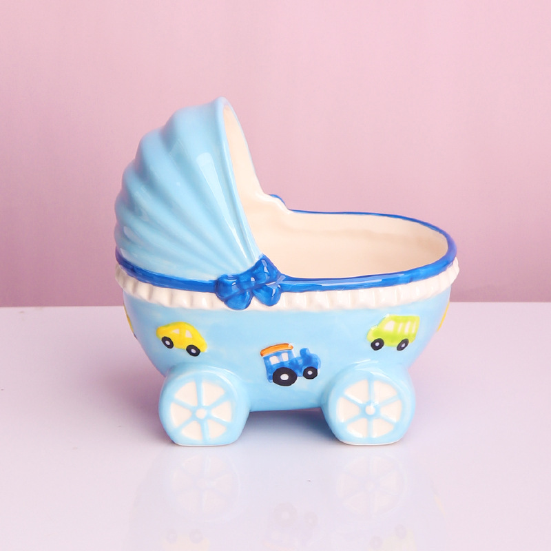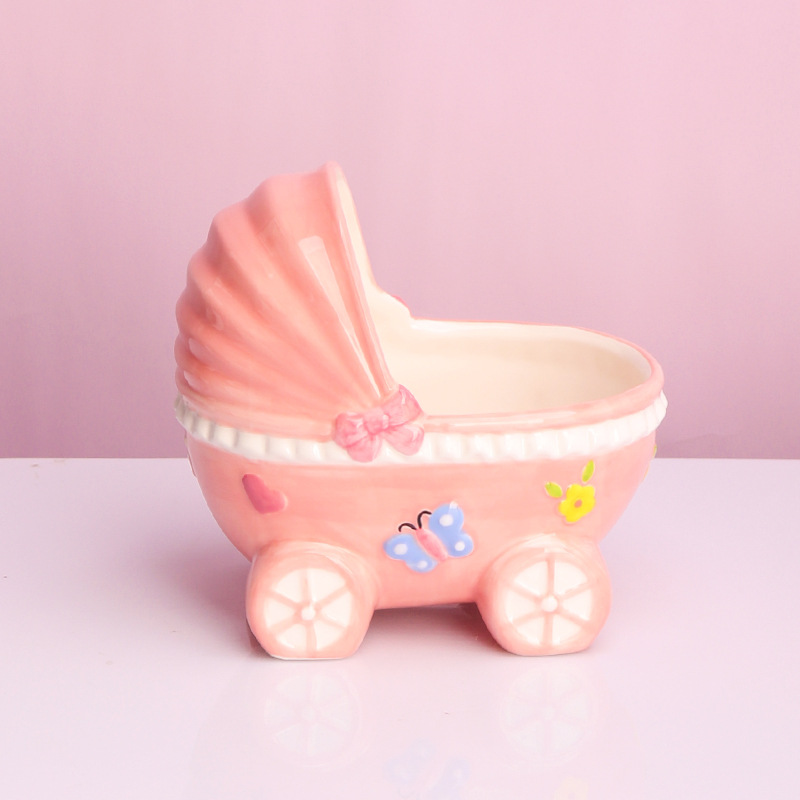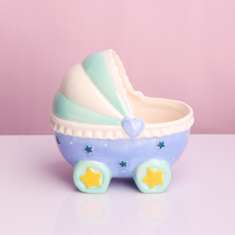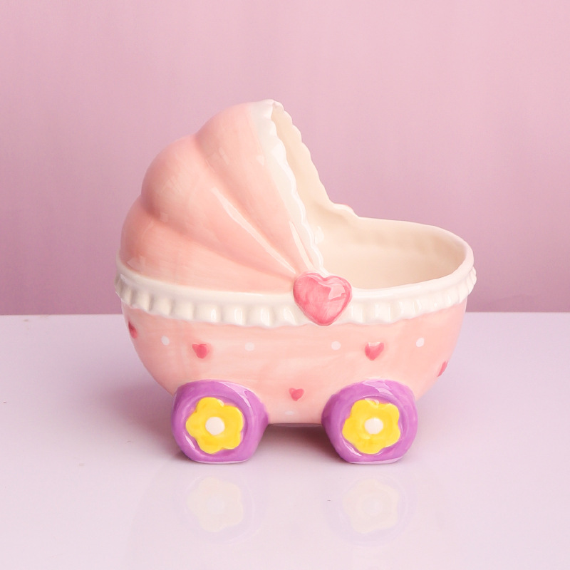 대형 크리에이 티브 세라믹 유모차 장식품 귀여운 보석 햄스터 황금 곰 보관 상자 화분 장식 선물스토어 가기