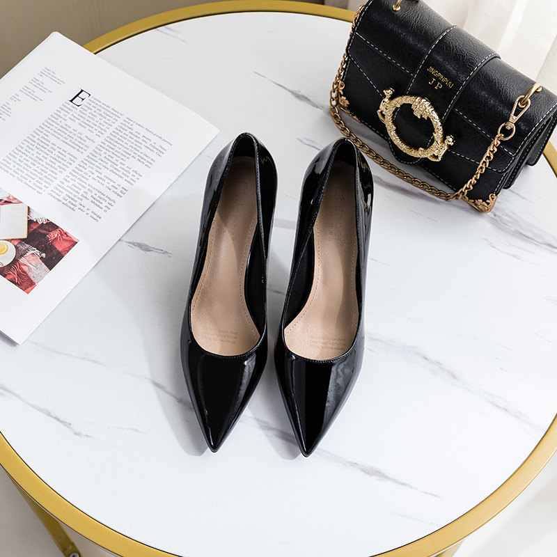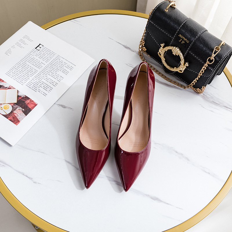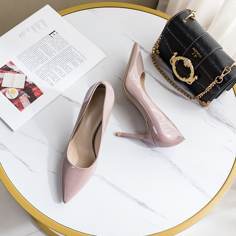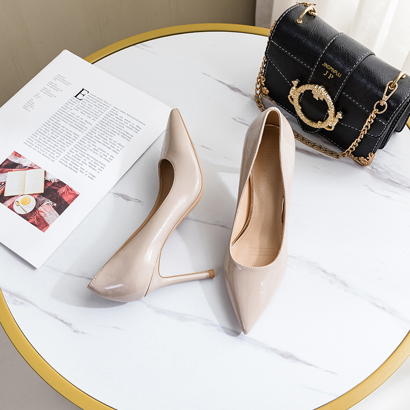 섹시한 뾰족한 단색 여성 신발 스티치 신발 한국 스타일 슈퍼 하이힐 얕은 입 싱글 레이어 신발 여성의 간단한 비즈니스 양가죽 하이힐