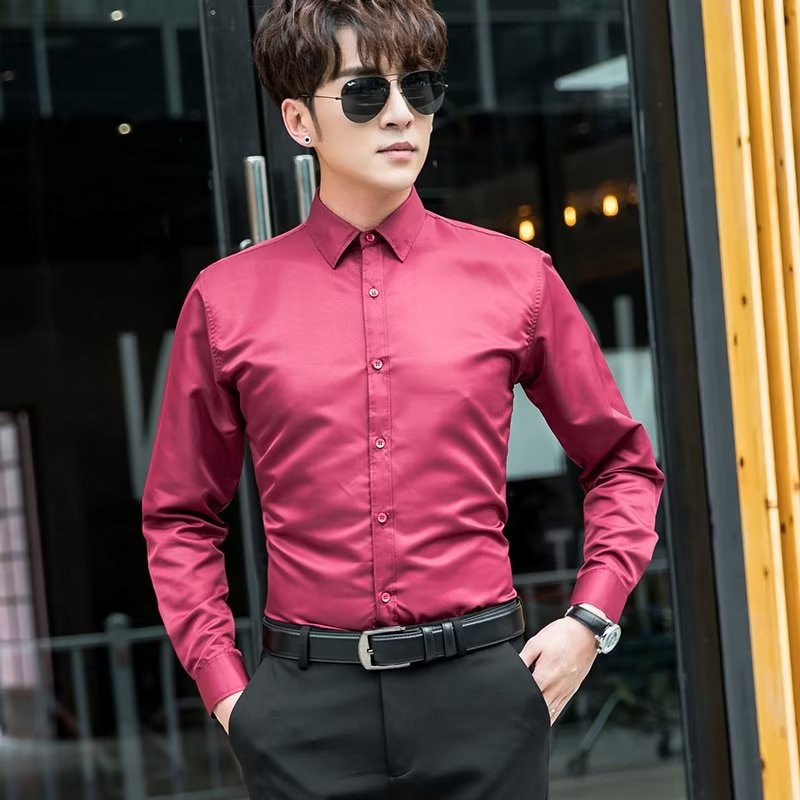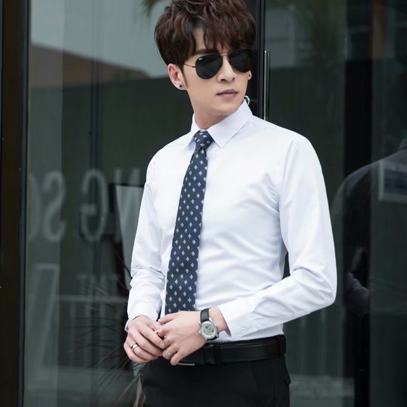 가을 2023 셔츠 남자의 슬림핏 비즈니스 원피스 잘생긴 흰색 긴팔 셔츠 남자의 한국 스타일 트렌디 탑스토어 가기