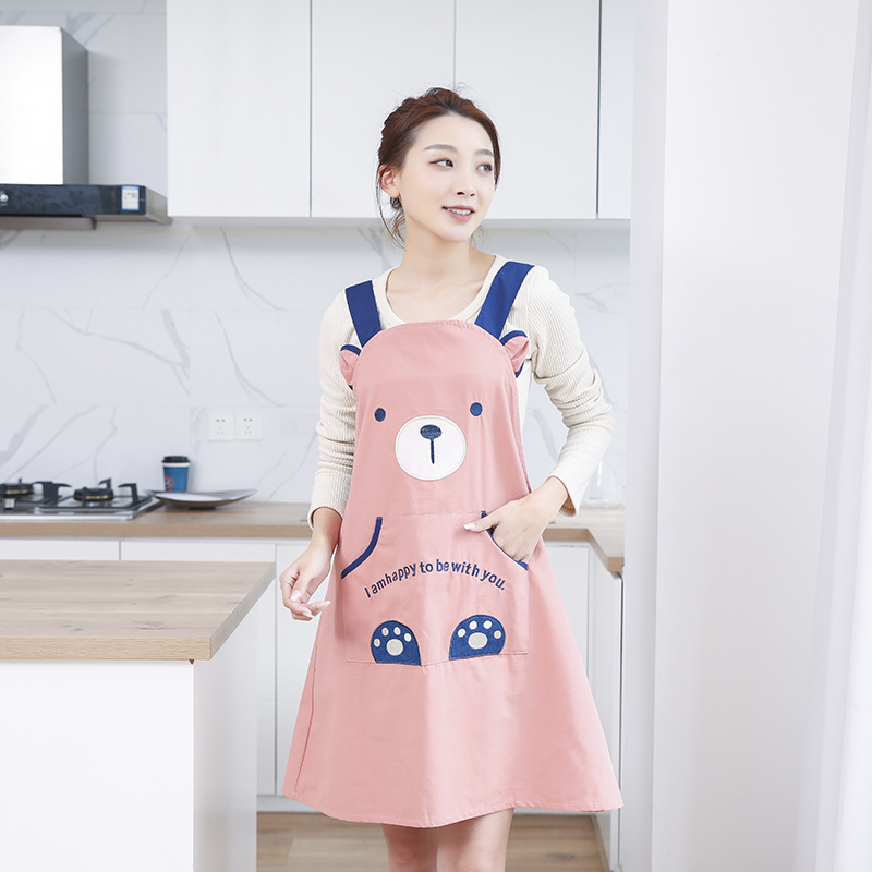 앞치마 가정용 안티 오일 얼룩 오버볼 성인 민소매 만화 곰 포켓 커피 숍 주방 앞치마 H 자형스토어 가기