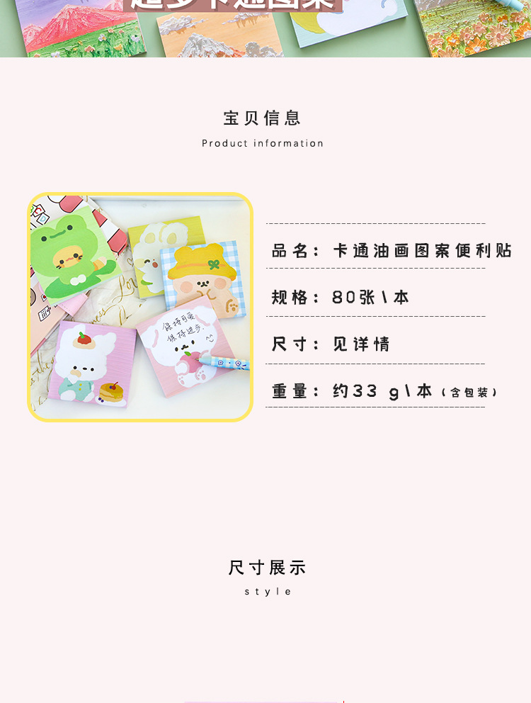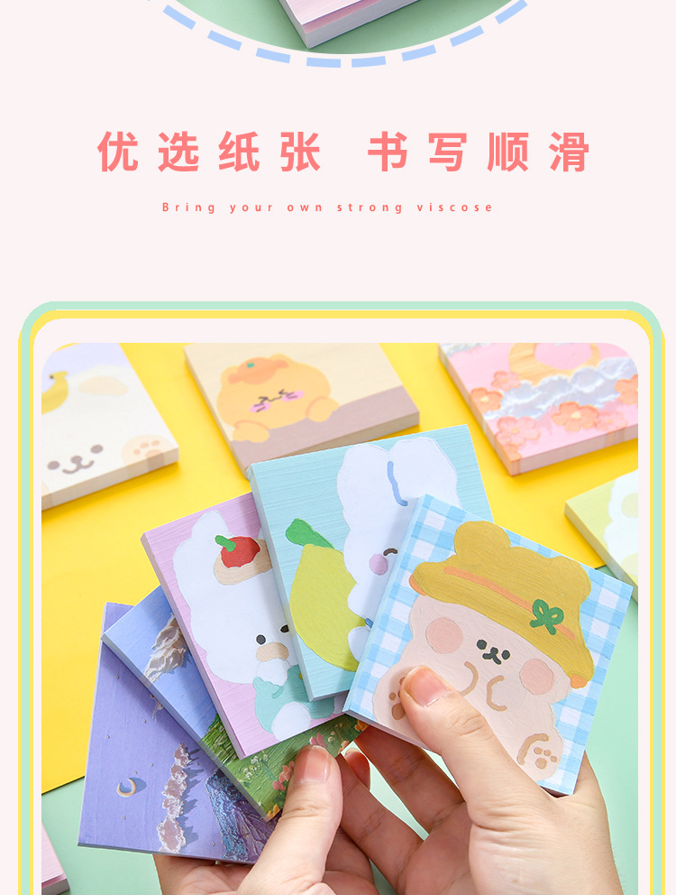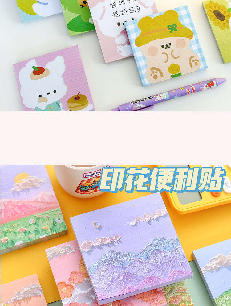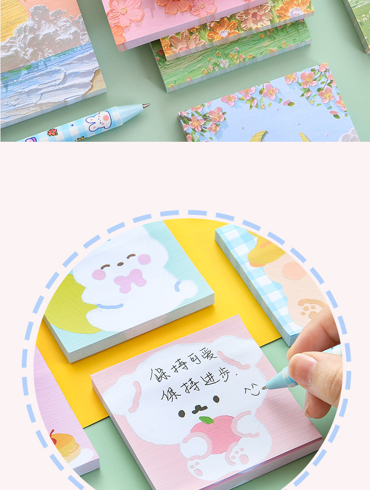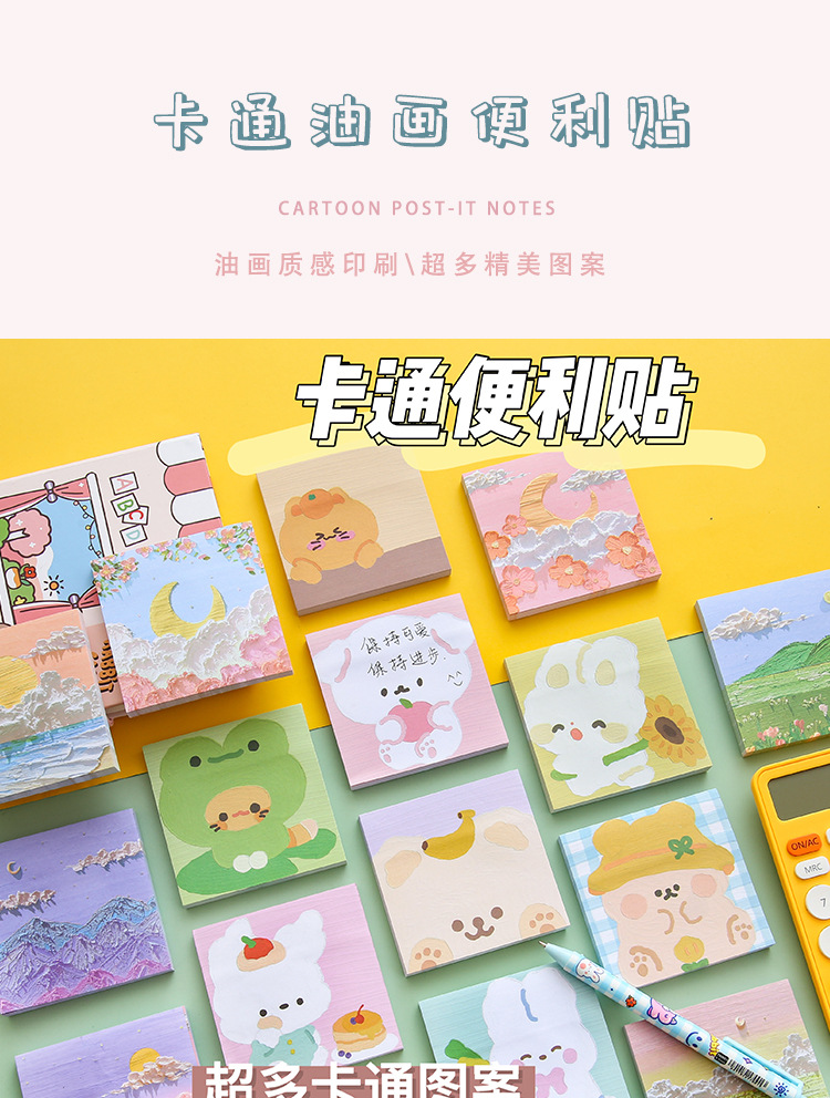 만화 풍경 입체 유화 스타일의 스틱 포스트잇 노트 간단한 메시지 메모장 그린 포스트잇 노트스토어 가기