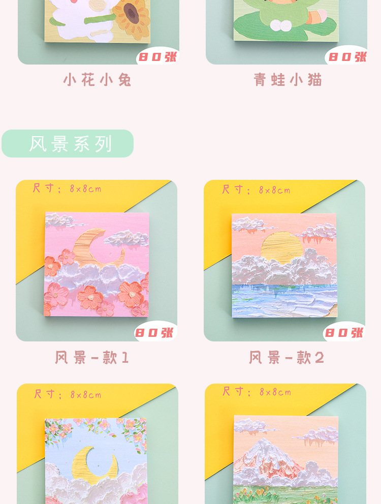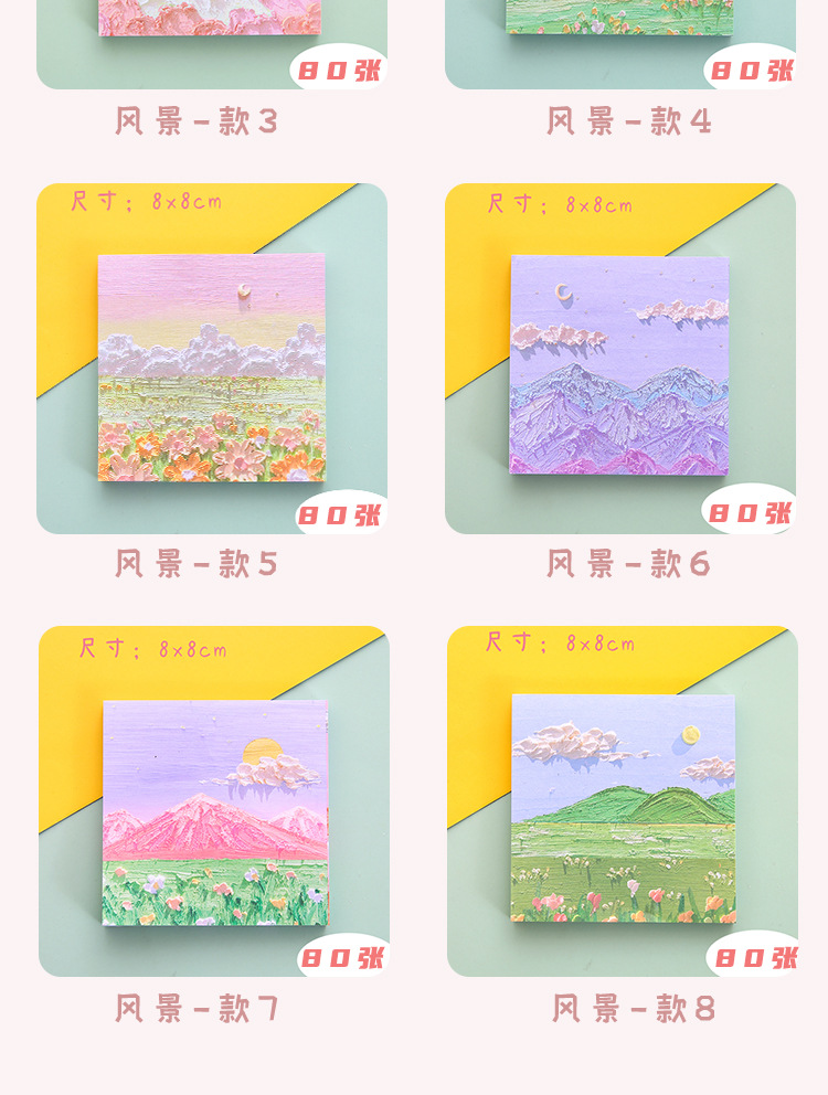 만화 풍경 입체 유화 스타일의 스틱 포스트잇 노트 간단한 메시지 메모장 그린 포스트잇 노트