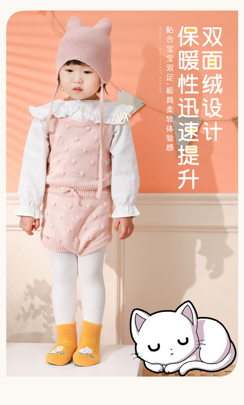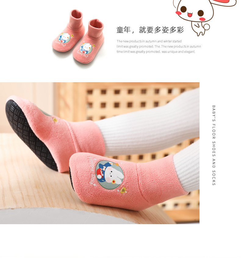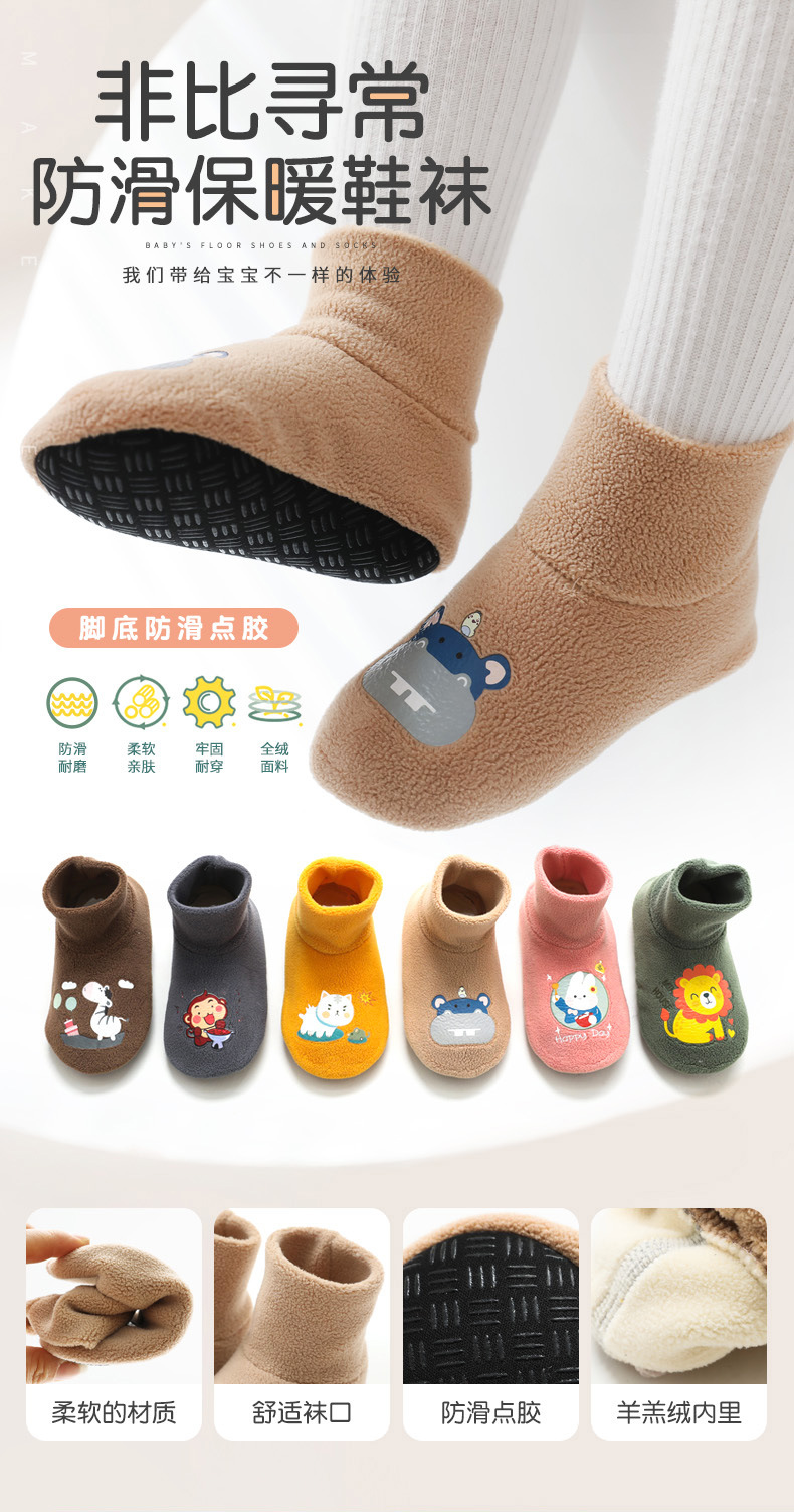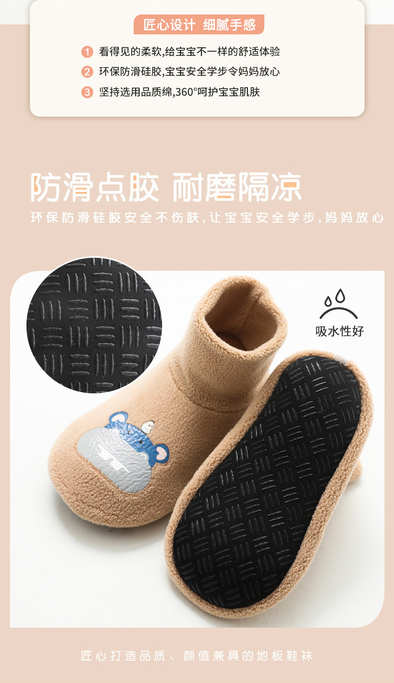 帮手描述图:宝宝地板袜秋冬儿童防滑袜套加绒厚底中筒婴儿学步袜
