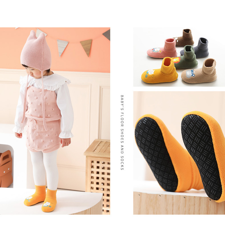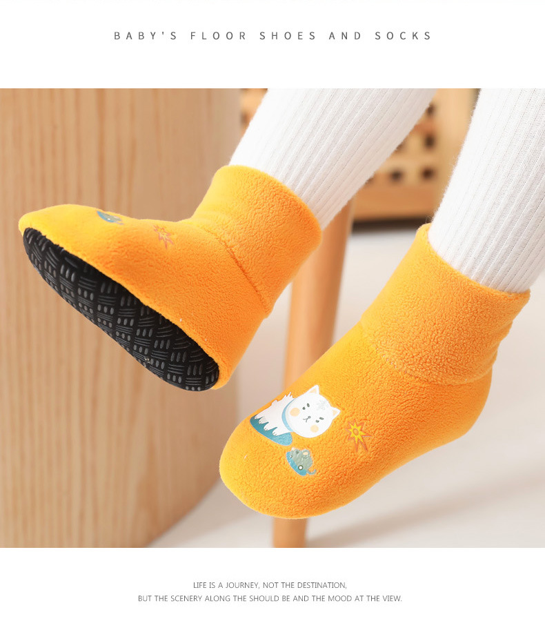 아기 바닥 양말 가을과 겨울 어린이 미끄럼 방지 양말 기모 두꺼운 바닥 중간 튜브 아기 유아 양말 높은 튜브 따뜻한 신발 커버
