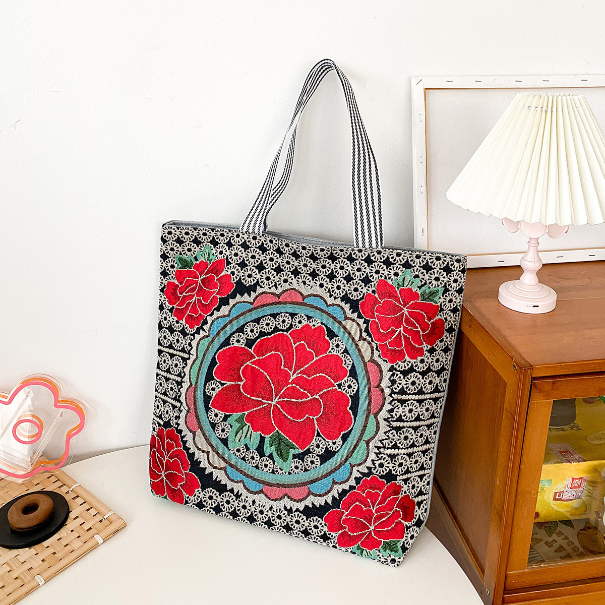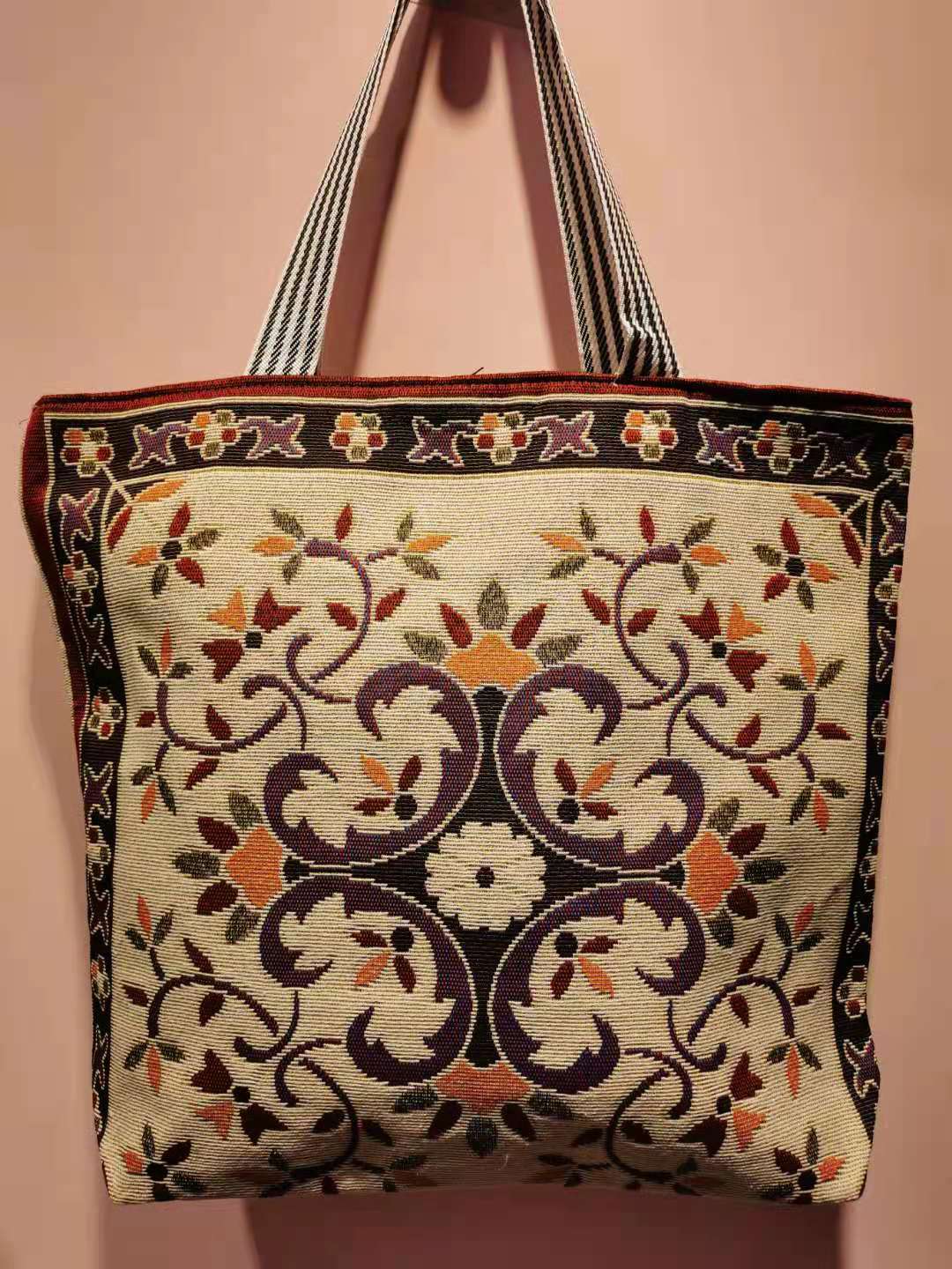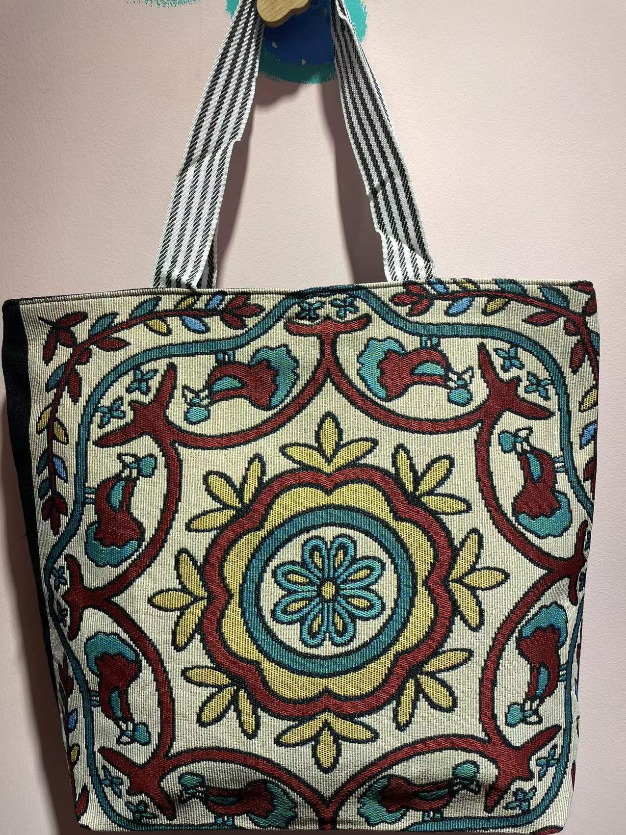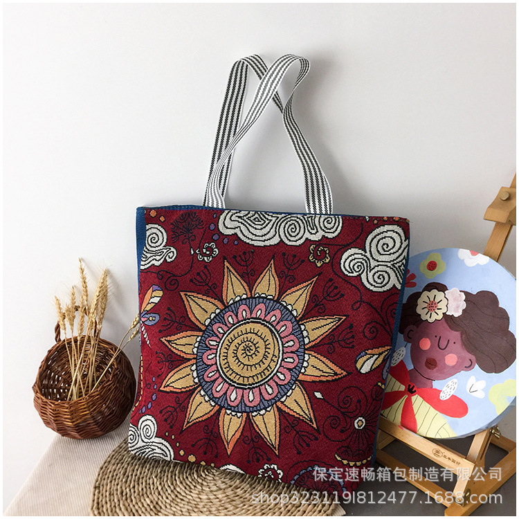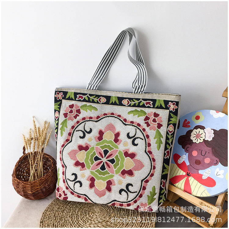 대외 무역 복고풍 새로운 자수 캔버스 가방 숄더 백 패션 여성 가방 미얀마 태국 대형 꽃 간단한 대용량 가방스토어 가기