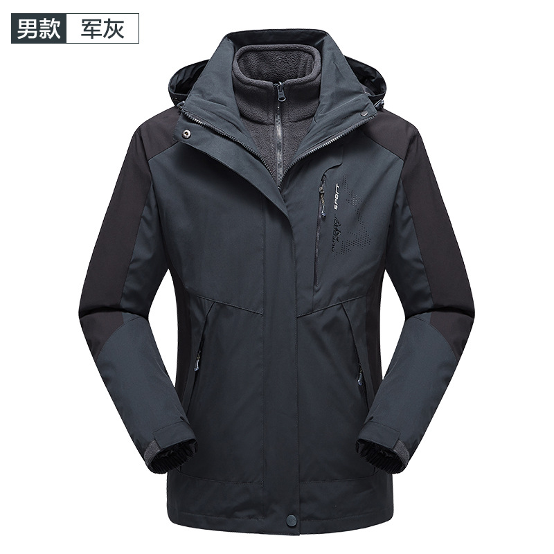 야외 러쉬 의류 남자의 3-in-1 분리형 겨울 기모 두꺼운 옷 세트 방풍 방수 등산 의류 유행스토어 가기
