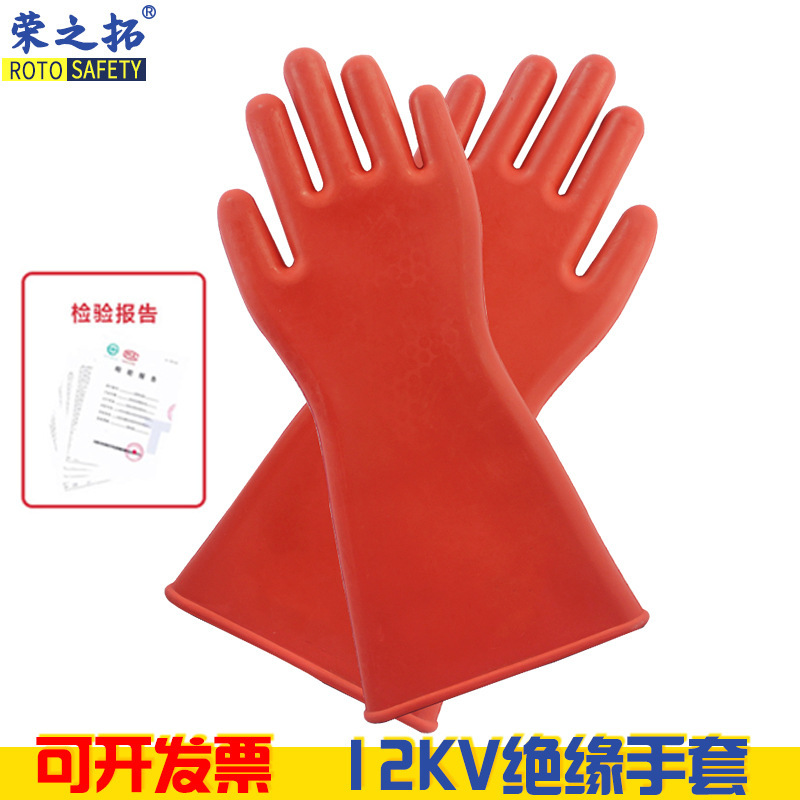 绝缘手套又叫高压绝缘手套,是用天然橡胶制成,用绝缘橡胶或乳胶经压片、模压、硫化或浸模成型的五指手套,主要用于电工作业,具有保护手或人体的作用。可防电,防水、耐酸碱、防化、防油。
