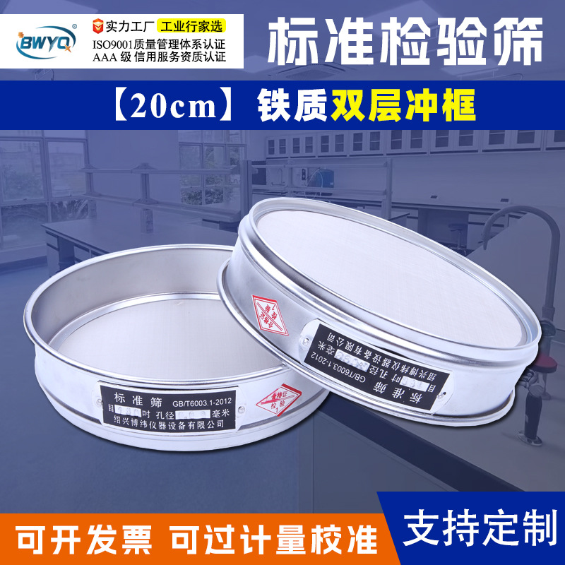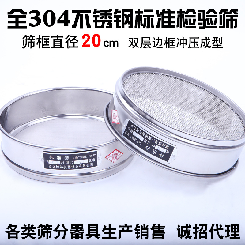 20cm标准检验筛子 实验室双层冲框试验筛药典筛全304不锈钢分样筛超值价:¥45