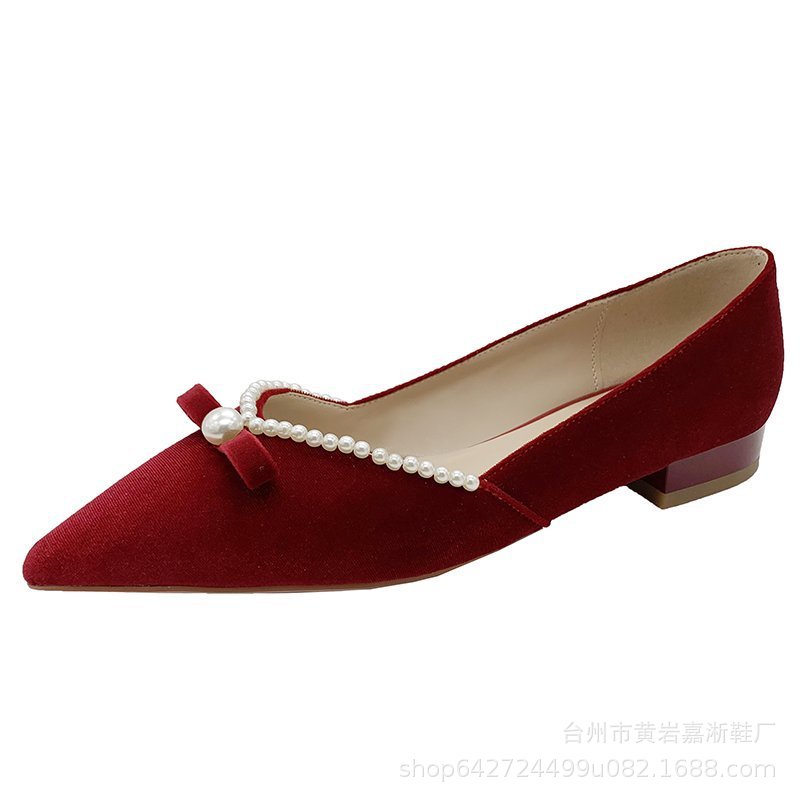 플랫 레드 웨딩 슈즈 여성용 2021 년 새 신부 신발 임산부 중국 스타일 Xiuhe 신발 여성용 활 진주 단층 신발스토어 가기