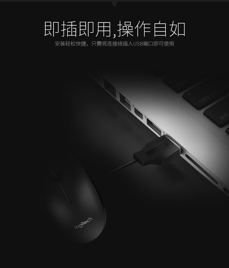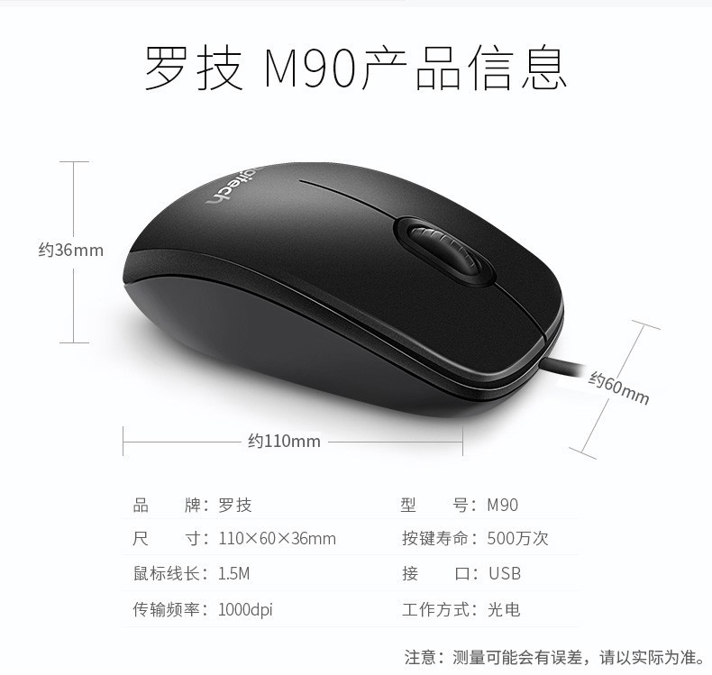 Logitech (Logitech)M90 유선 USB 마우스 플러그 앤 플레이 노트북 데스크탑 오피스 마우스스토어 가기