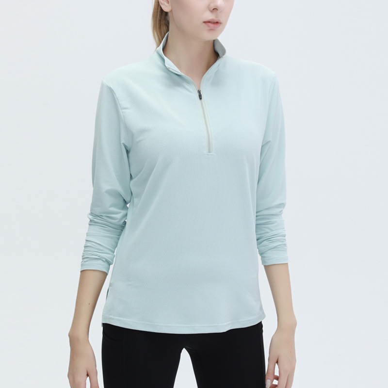 가을과 겨울 새로운 요가복 여성용 속건 긴팔 티셔츠 러닝 루즈한 스포츠웨어 하프 지퍼 피트니스 의류 요가 의류스토어 가기