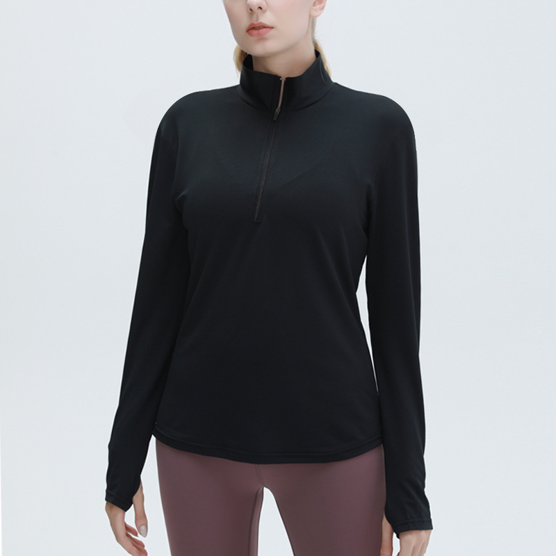 가을과 겨울 새로운 요가복 여성용 속건 긴팔 티셔츠 러닝 루즈한 스포츠웨어 하프 지퍼 피트니스 의류 요가 의류