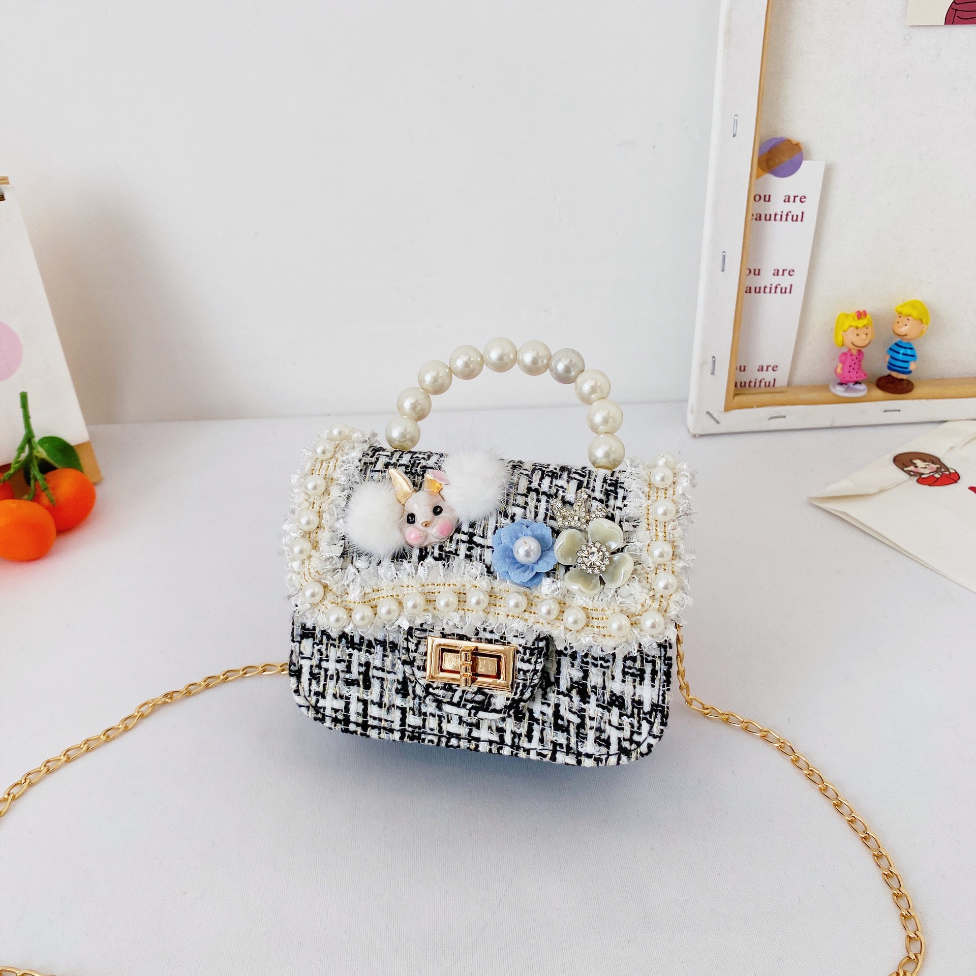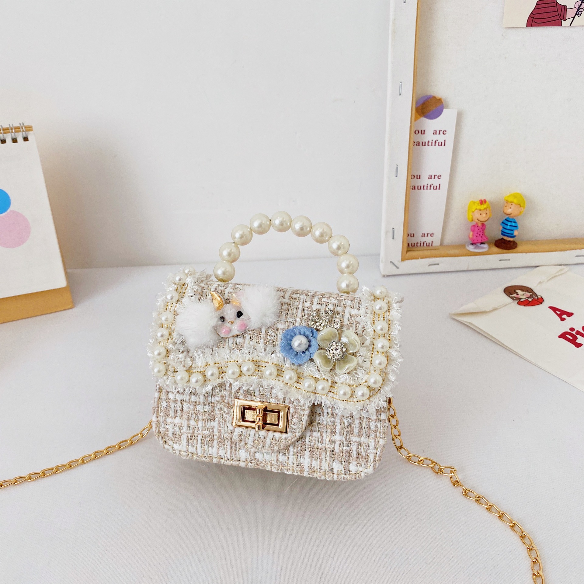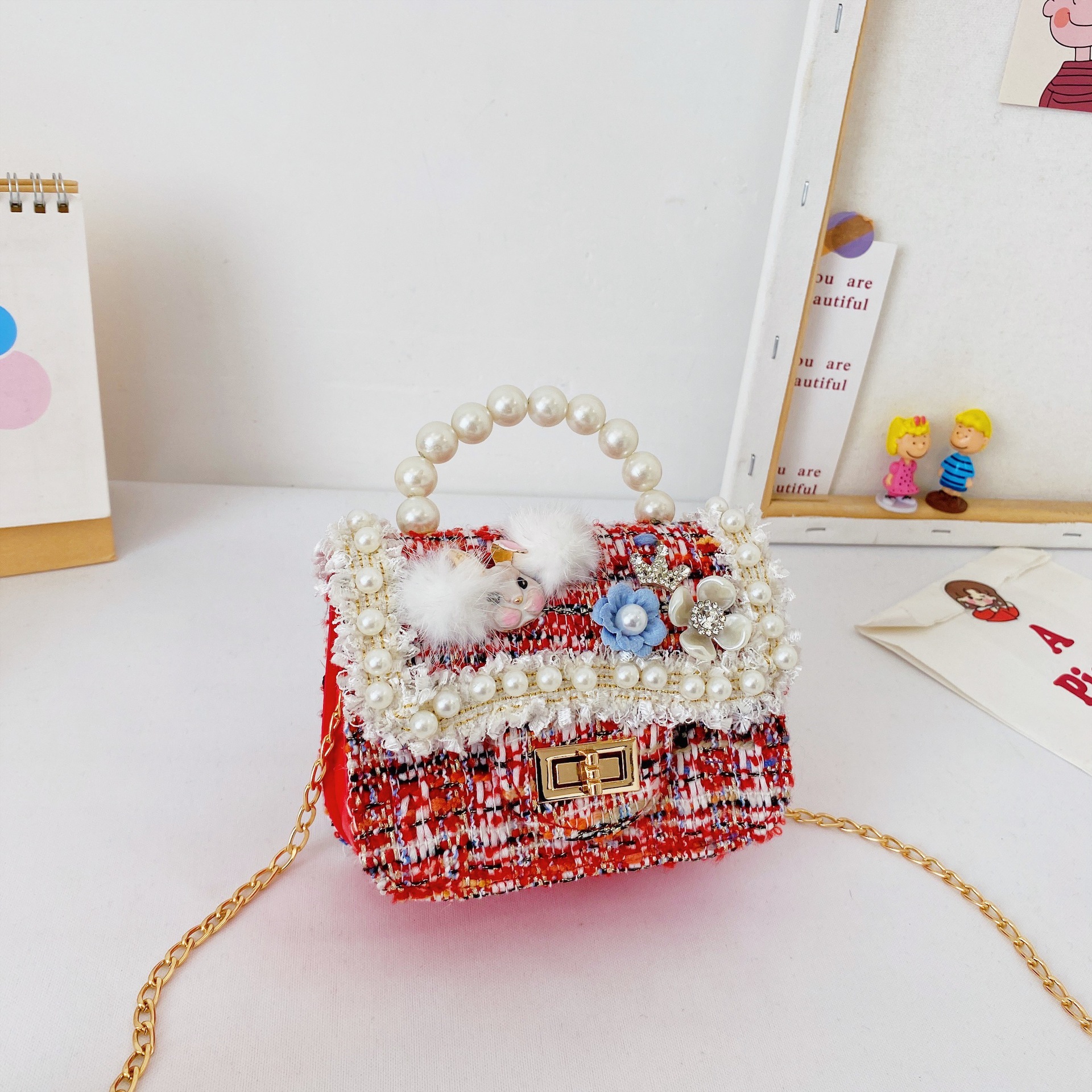 면과 린넨 어린이 진주 핸드백 2022 겨울 새로운 한국 스타일 수출용 귀여운 개인화 된 서양 스타일 여아 크로스 바디 백