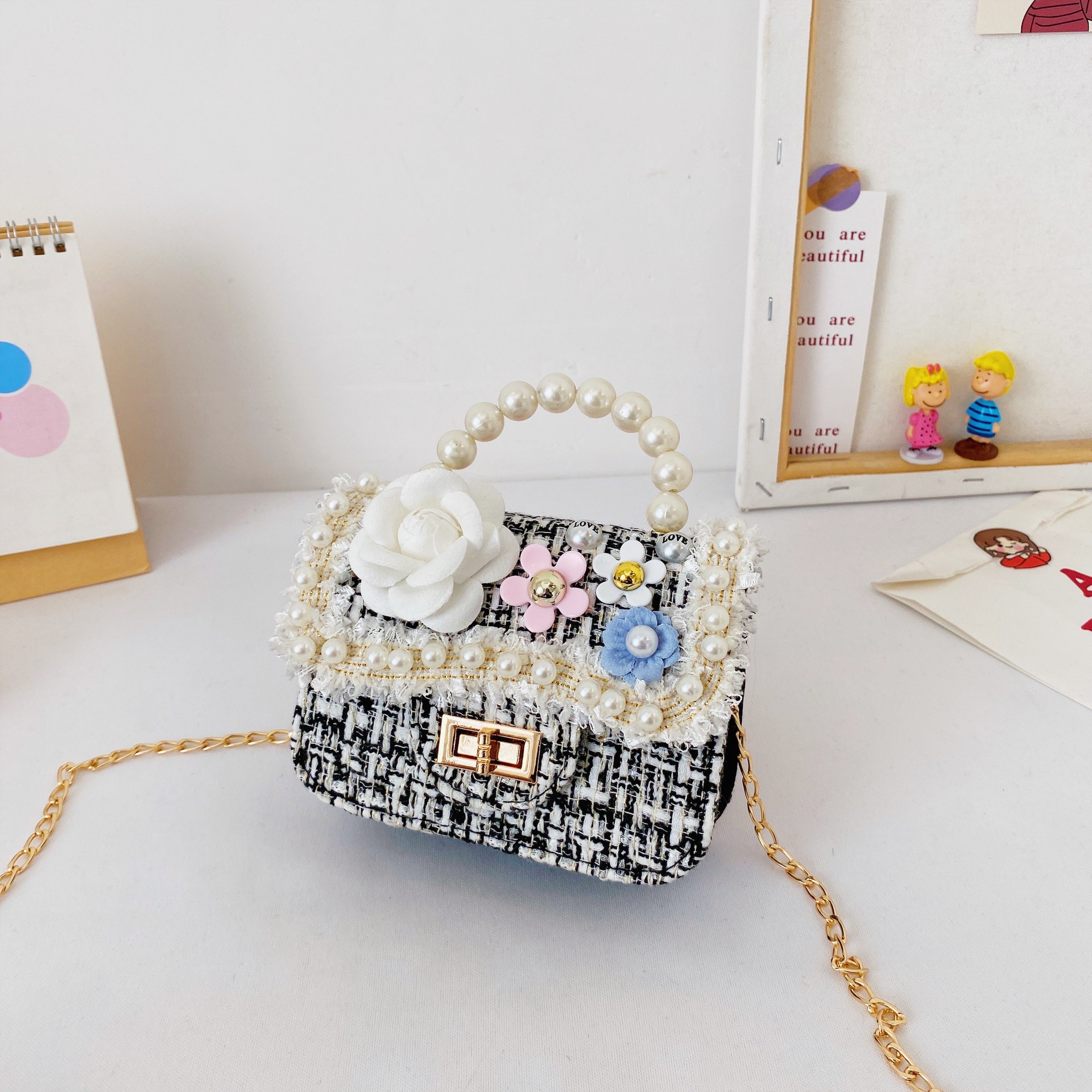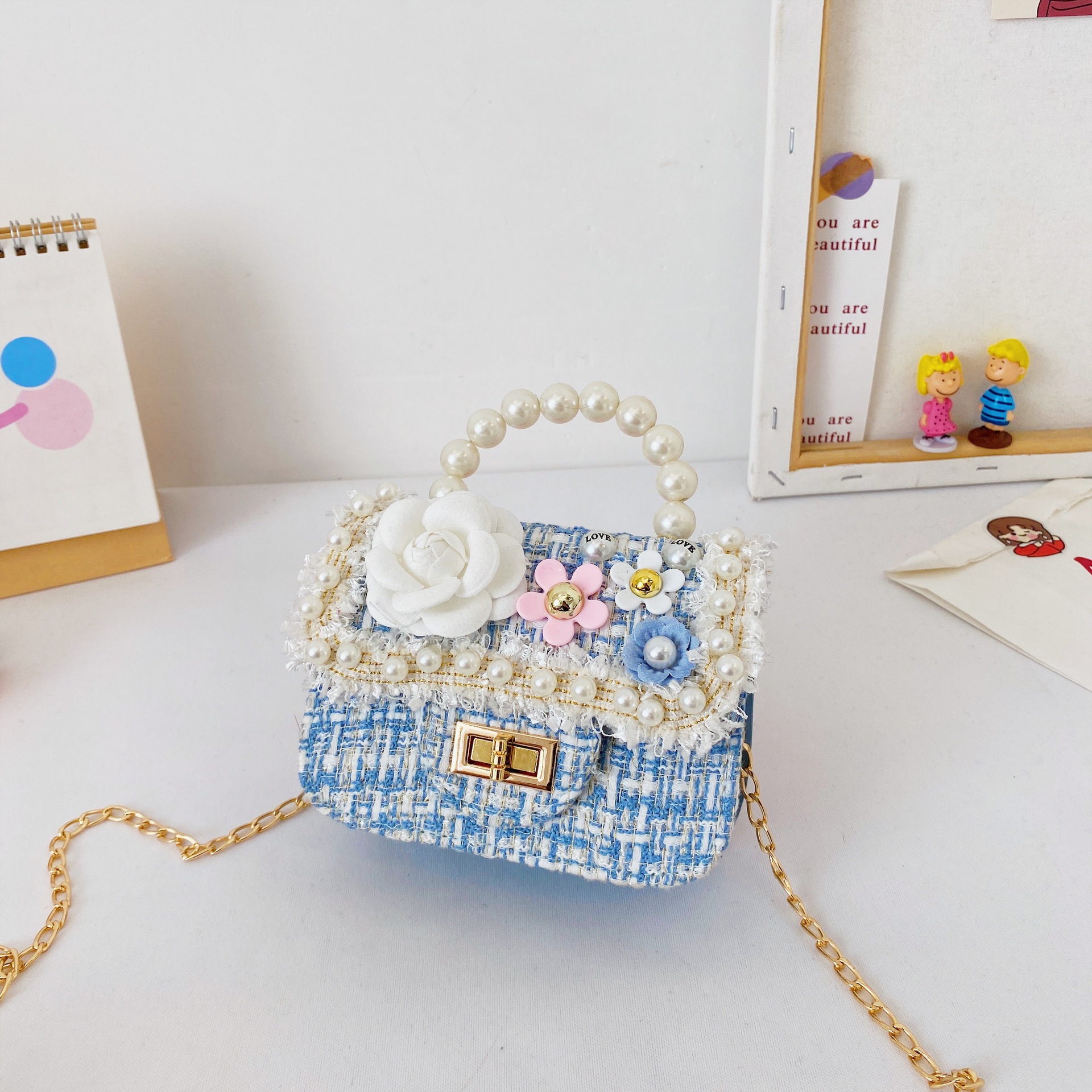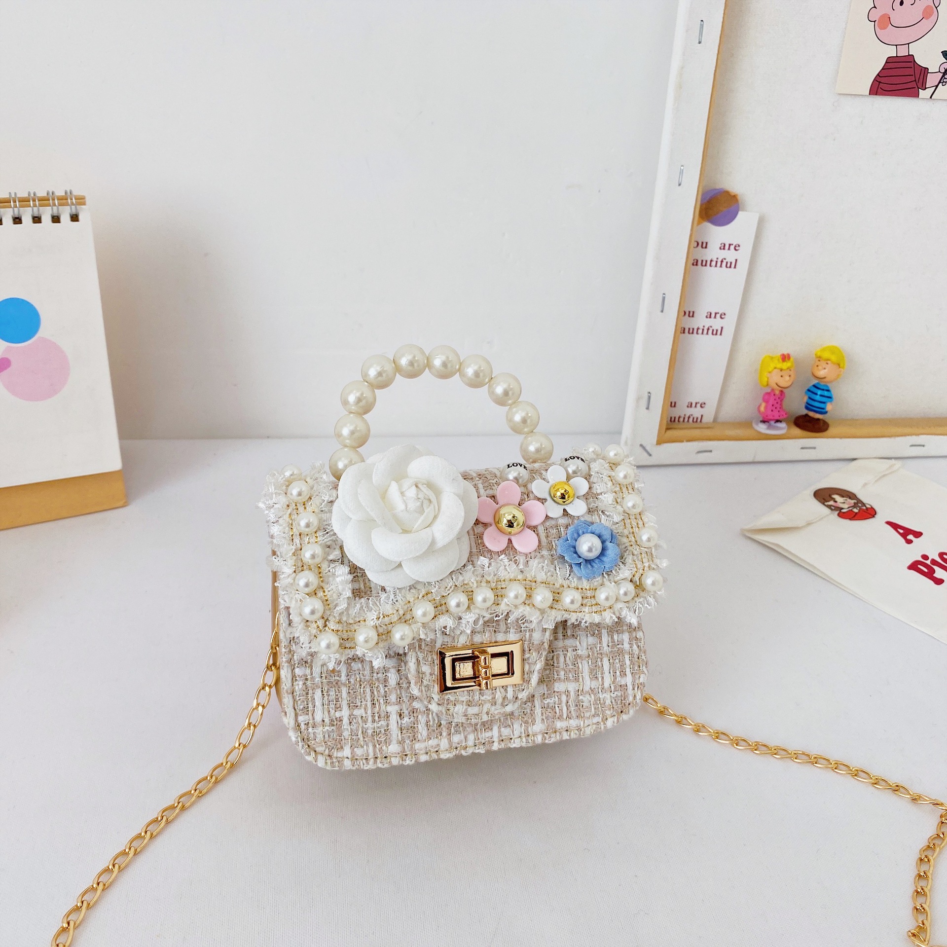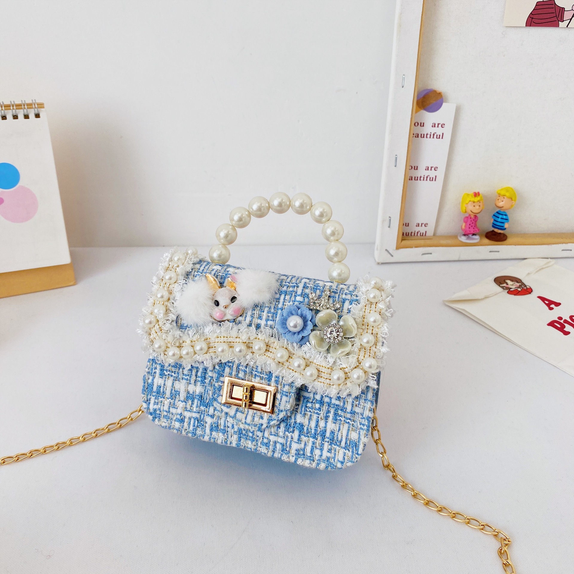 면과 린넨 어린이 진주 핸드백 2022 겨울 새로운 한국 스타일 수출용 귀여운 개인화 된 서양 스타일 여아 크로스 바디 백