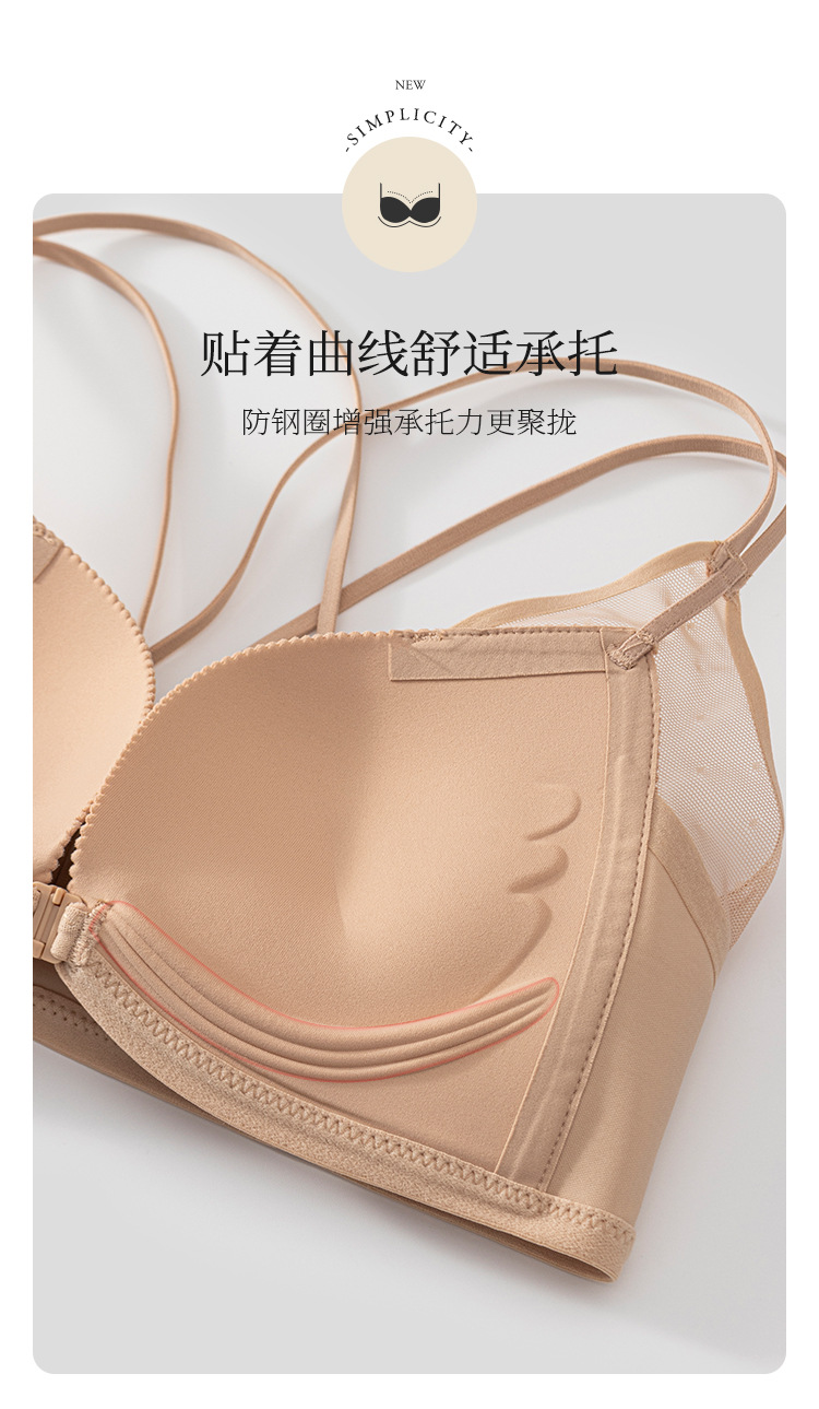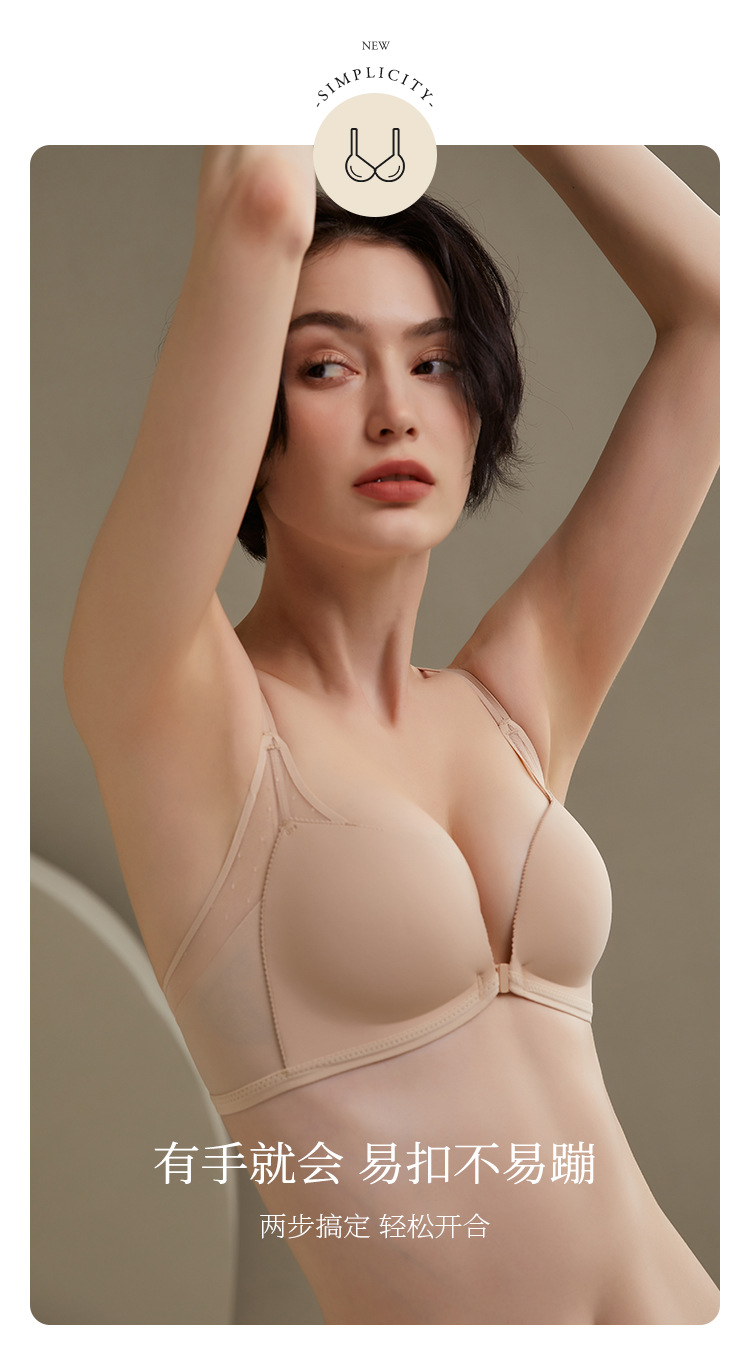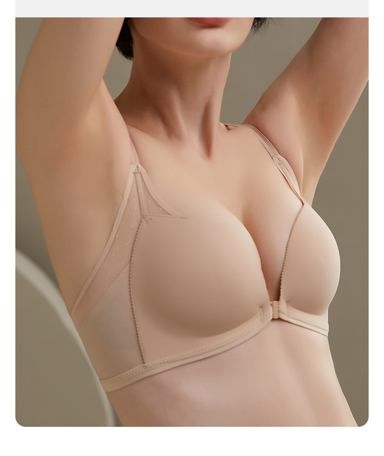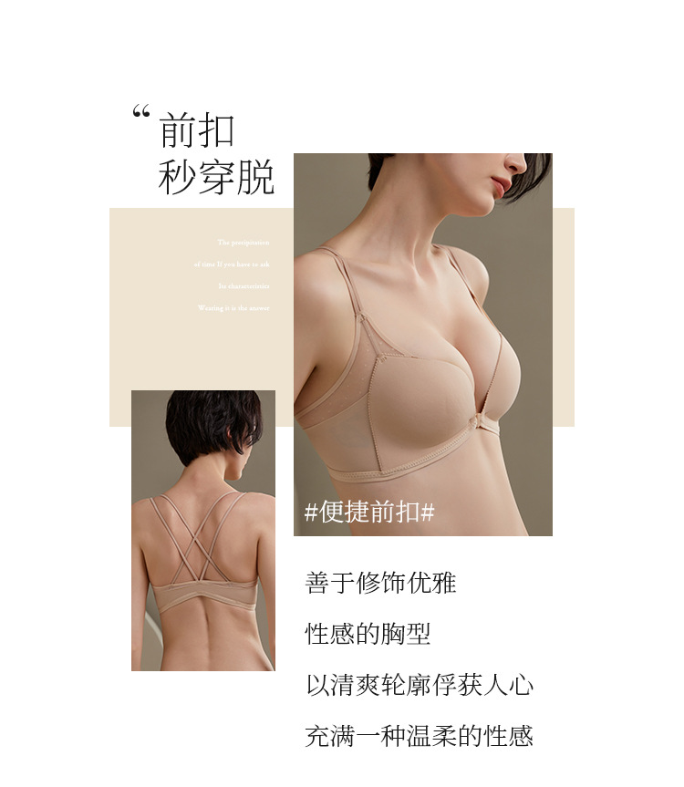 레이스 앞후크 섹시한 등이 예쁜 여성용 속옷, 노라인 노와이어 작은 가슴을 모아주는 광택 조절형 브라, 섹시 스타일