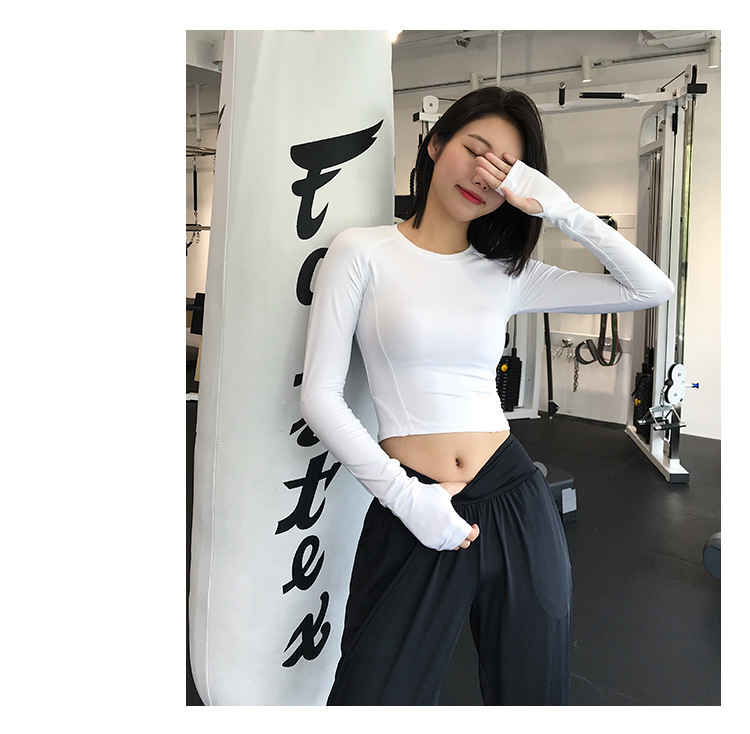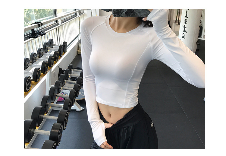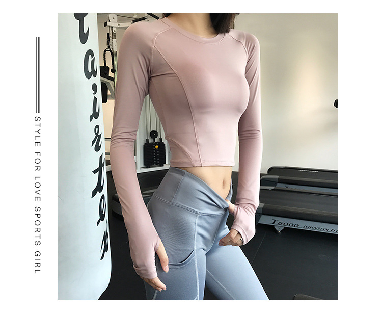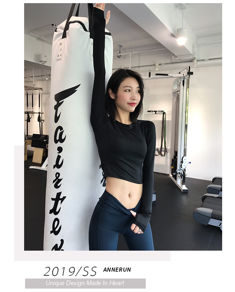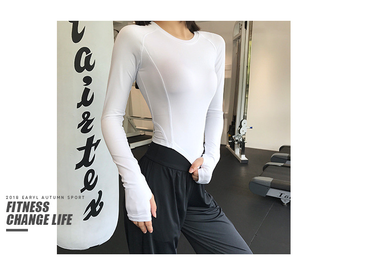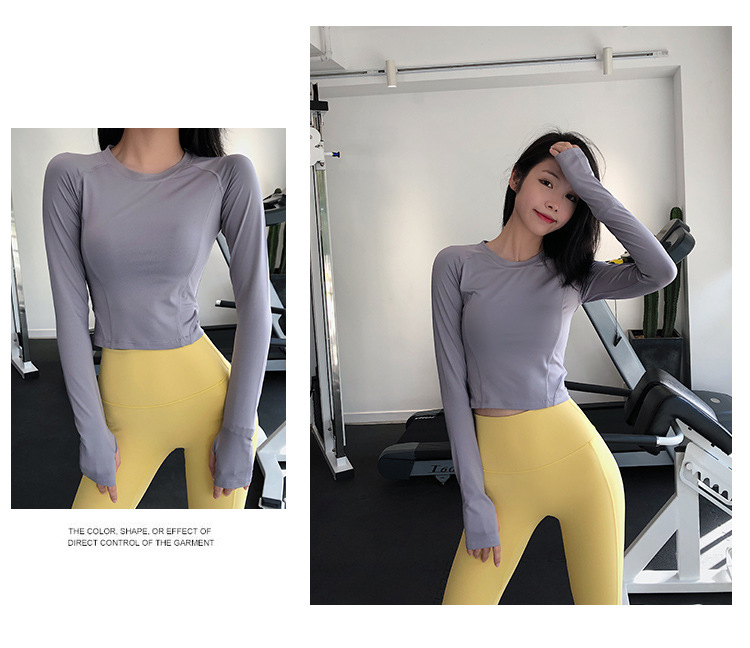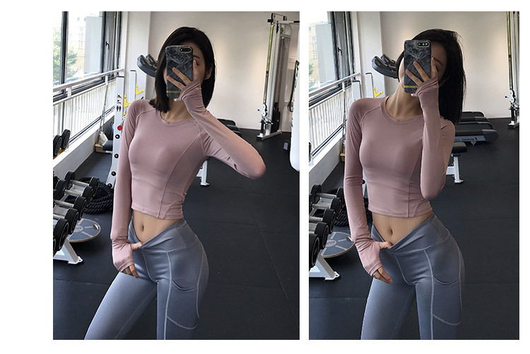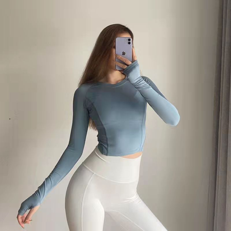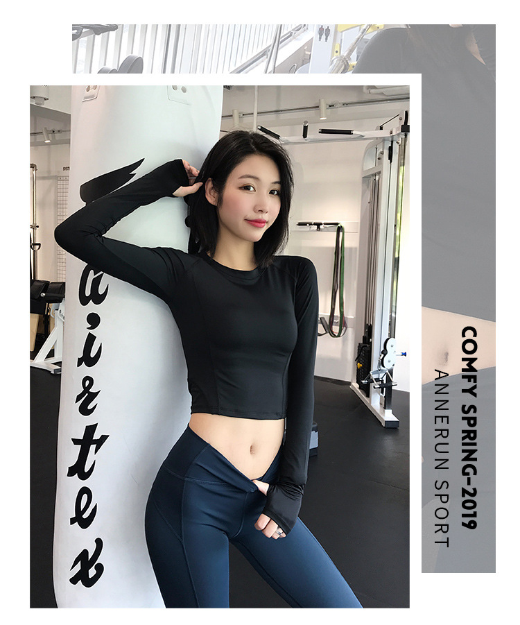 크로스 보더 요가 의류 긴팔 스포츠 꽉 끼는 압축 의류 섹시한 속건 티셔츠 인터넷 인기 러닝 피트니스 의류 여성용 탑스토어 가기