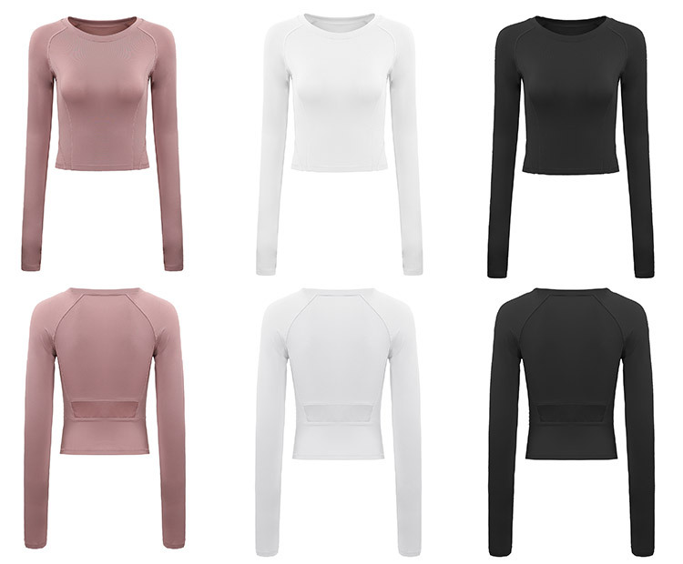 크로스 보더 요가 의류 긴팔 스포츠 꽉 끼는 압축 의류 섹시한 속건 티셔츠 인터넷 인기 러닝 피트니스 의류 여성용 탑