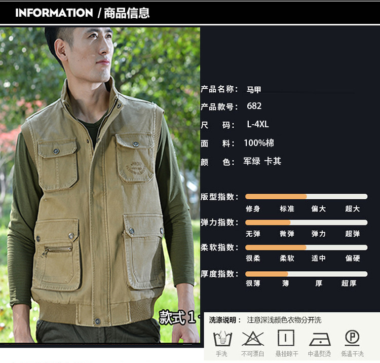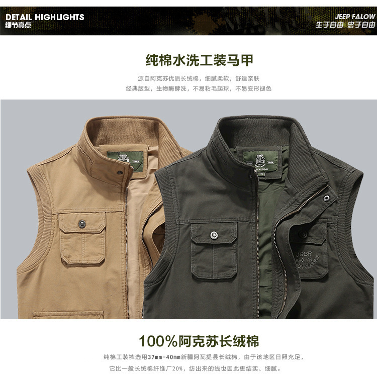멀티 포켓 프록 코튼 워싱 남성용 양복 조끼 야외 등산 민소매 양복 조끼 중년 사진가 양복 조끼 도매스토어 가기