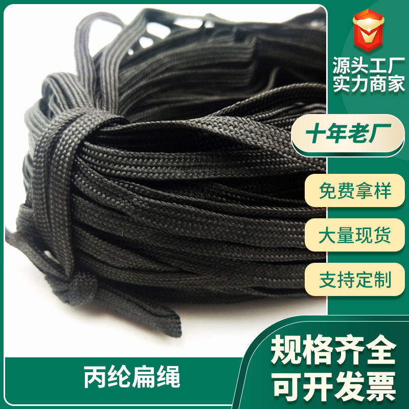 스팟 5-8mm 코일로드 로프 블랙 플랫 로프 폴리 프로필렌 더블 중공 플랫 로프 의류 액세서리 로프 도매스토어 가기