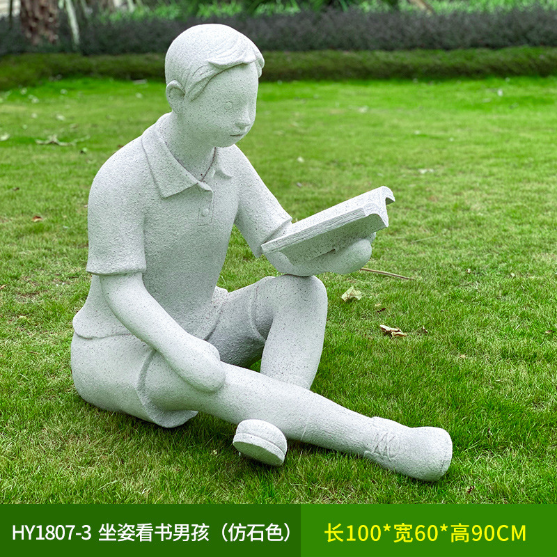 • HY1807-3-Sitting 독서 소년 (모조 돌)