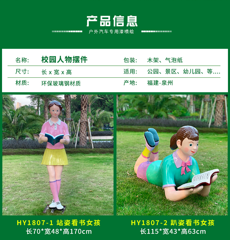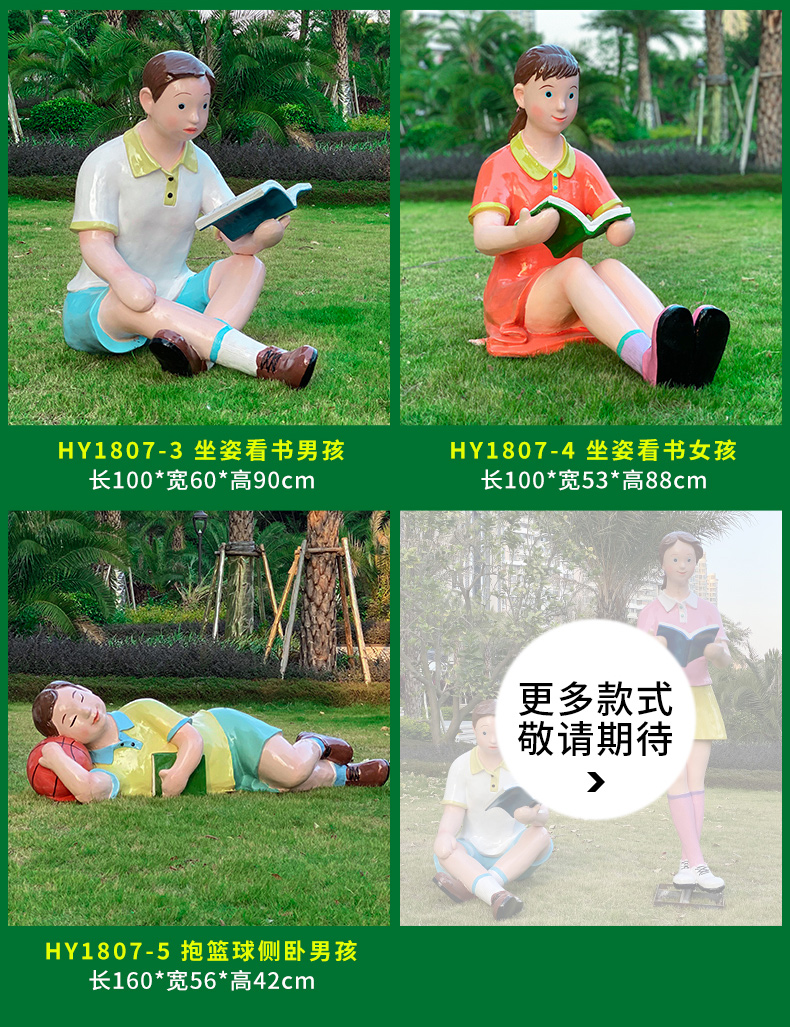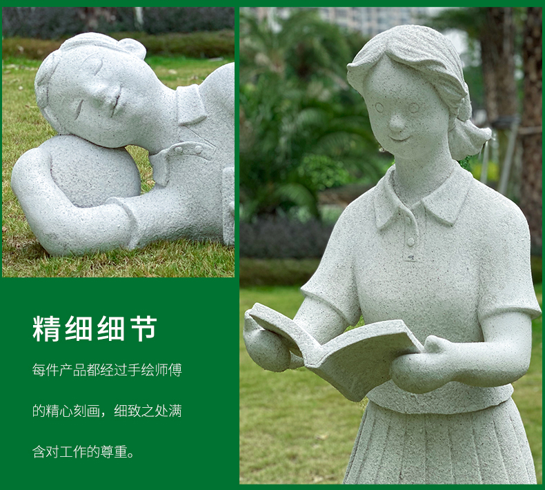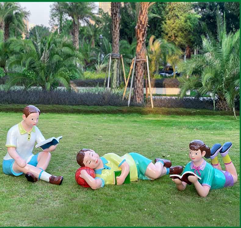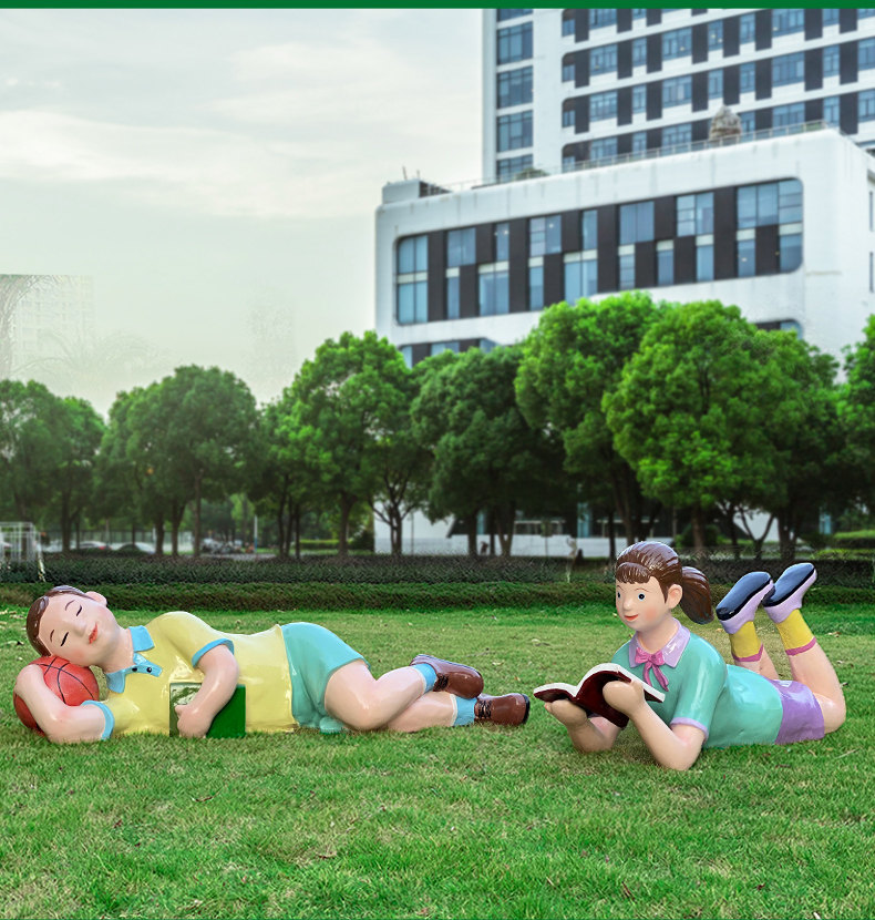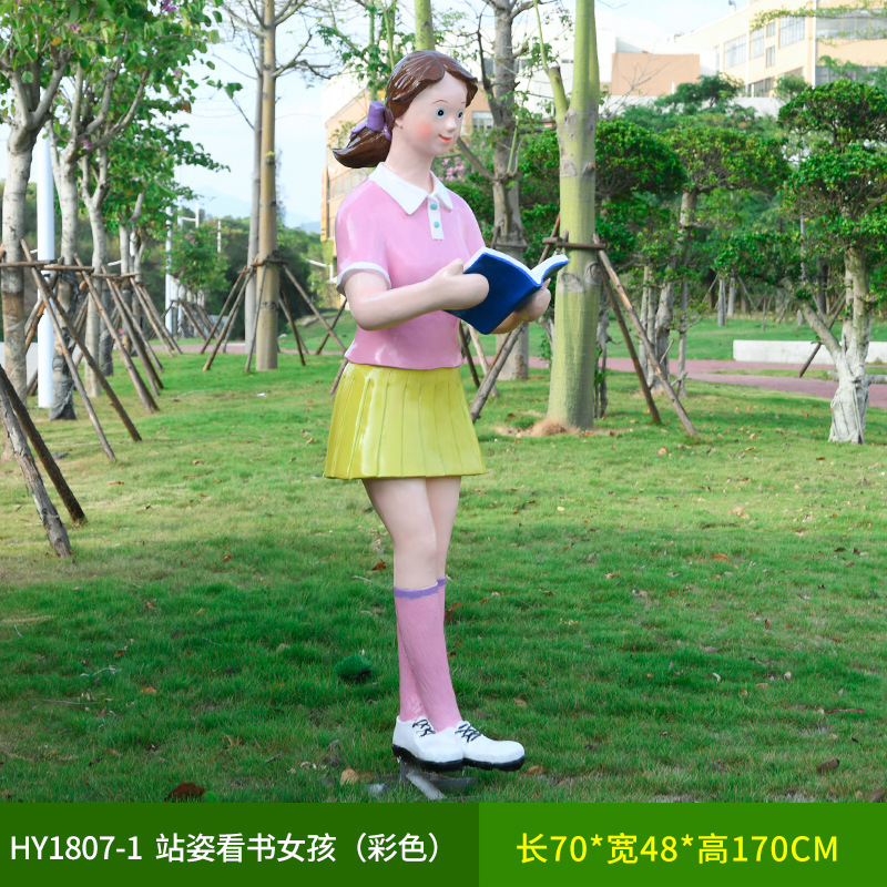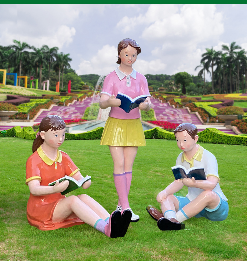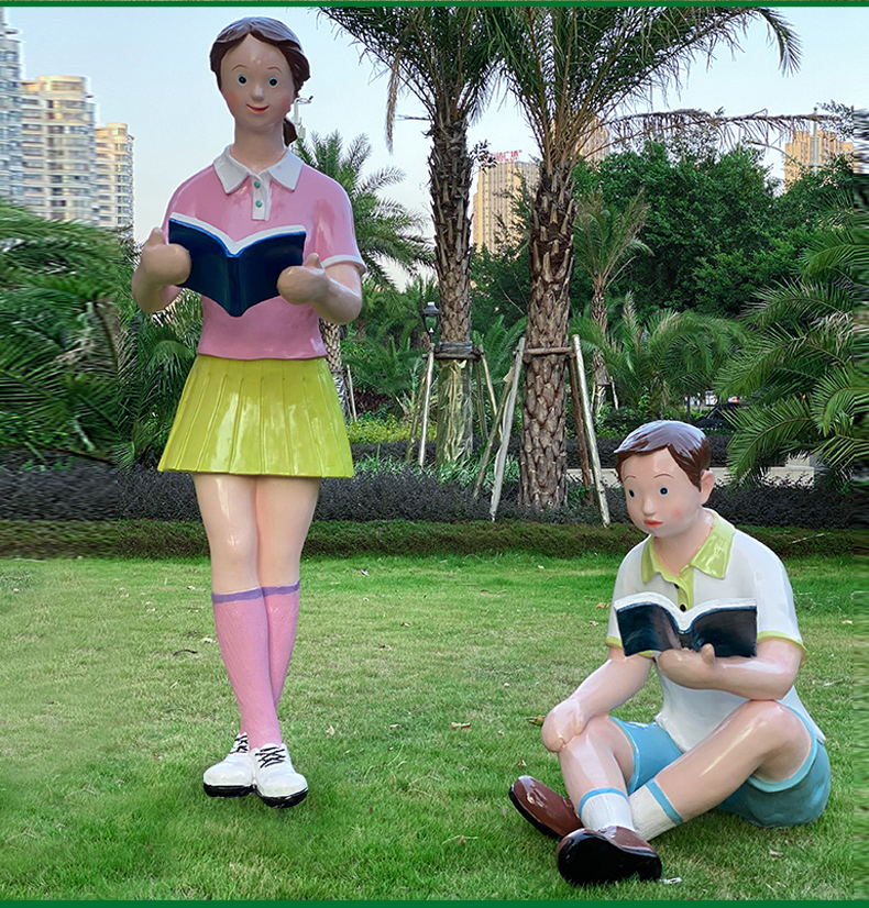 유리 섬유 강화 플라스틱 시뮬레이션 그림 조각 독서 소년 소녀 야외 캠퍼스 학교 풍경 장식스토어 가기