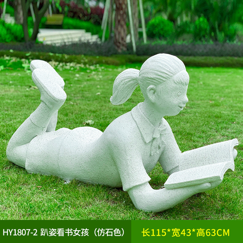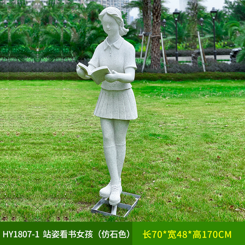 • HY1807-1-Standing 독서 소녀 (모조 돌)