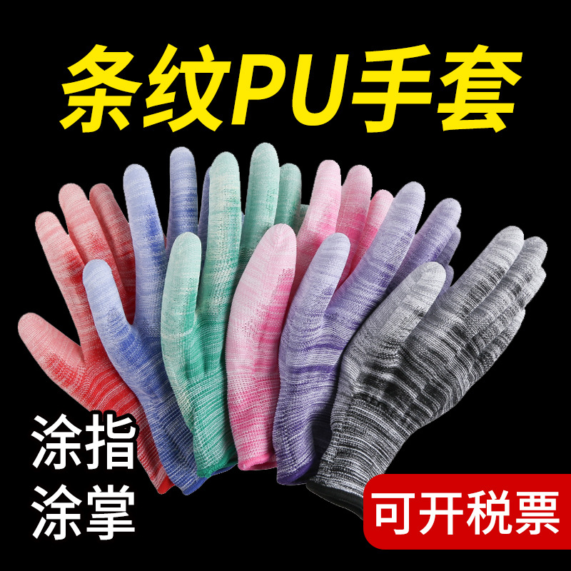 PU 코팅 야자 장갑 대형 얼룩말 패턴 코팅 손바닥 먼지가없는 정전기 방지 스트라이프 인쇄 원예 정원 노동 보호 장갑 도매스토어 가기