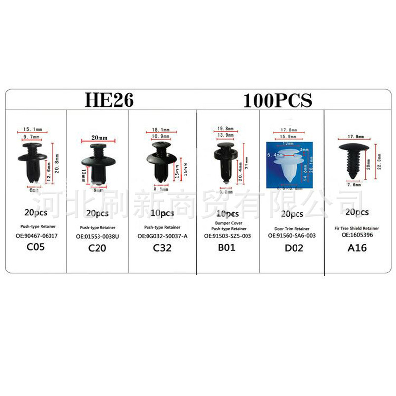 자동차 플라스틱 버클 100PC 하이브리드 유니버설 바디 고정 나사 클램프 나일론 클립 HE26