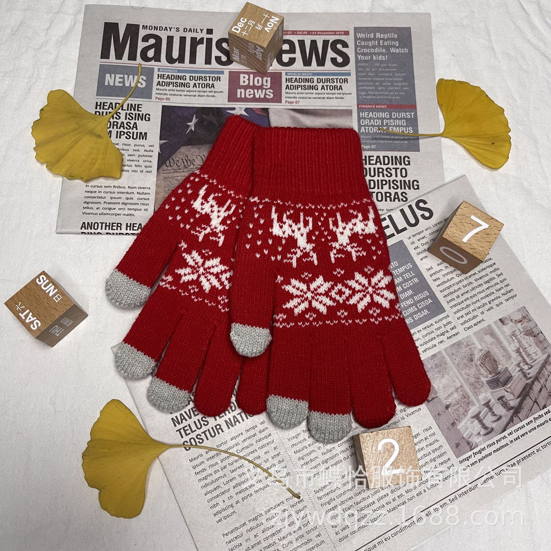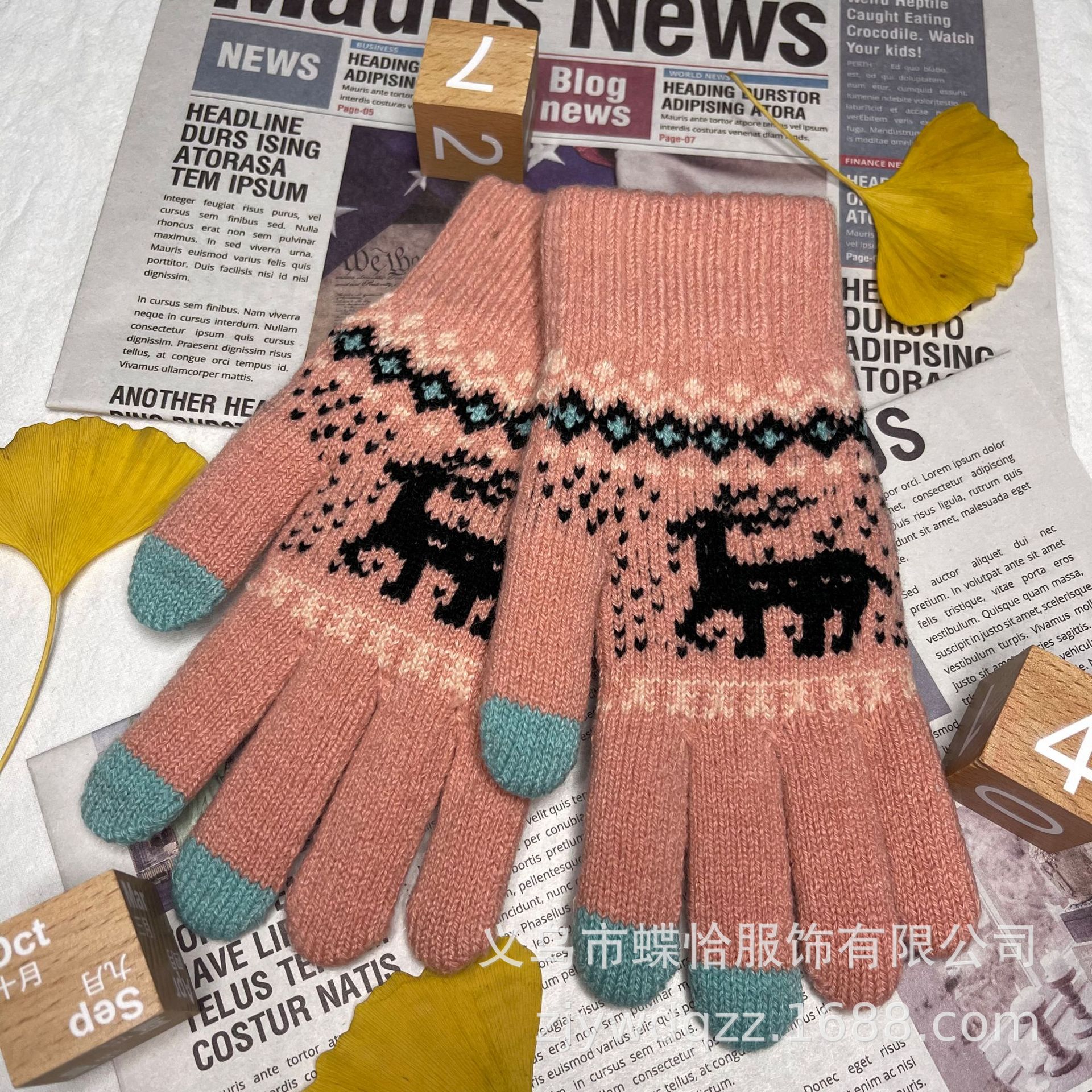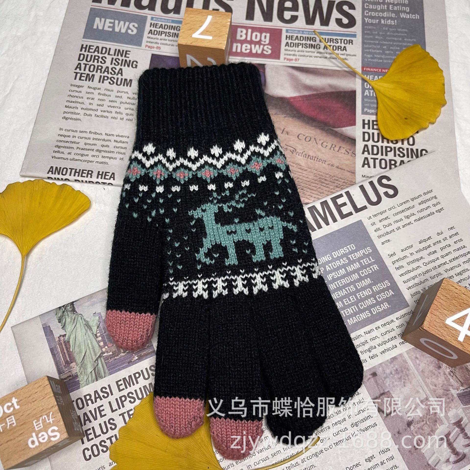 새끼 사슴 니트 따뜻한 터치 스크린 장갑 기모 두꺼운 방한 니트 숙녀 장갑의 겨울 새로운 한국어 버전 도매