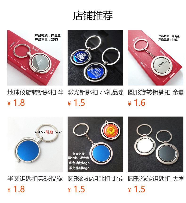 원형 회전 열쇠고리 대학 아연 합금 광고 창의적 정교한 패션 액세서리 창의적 선물스토어 가기