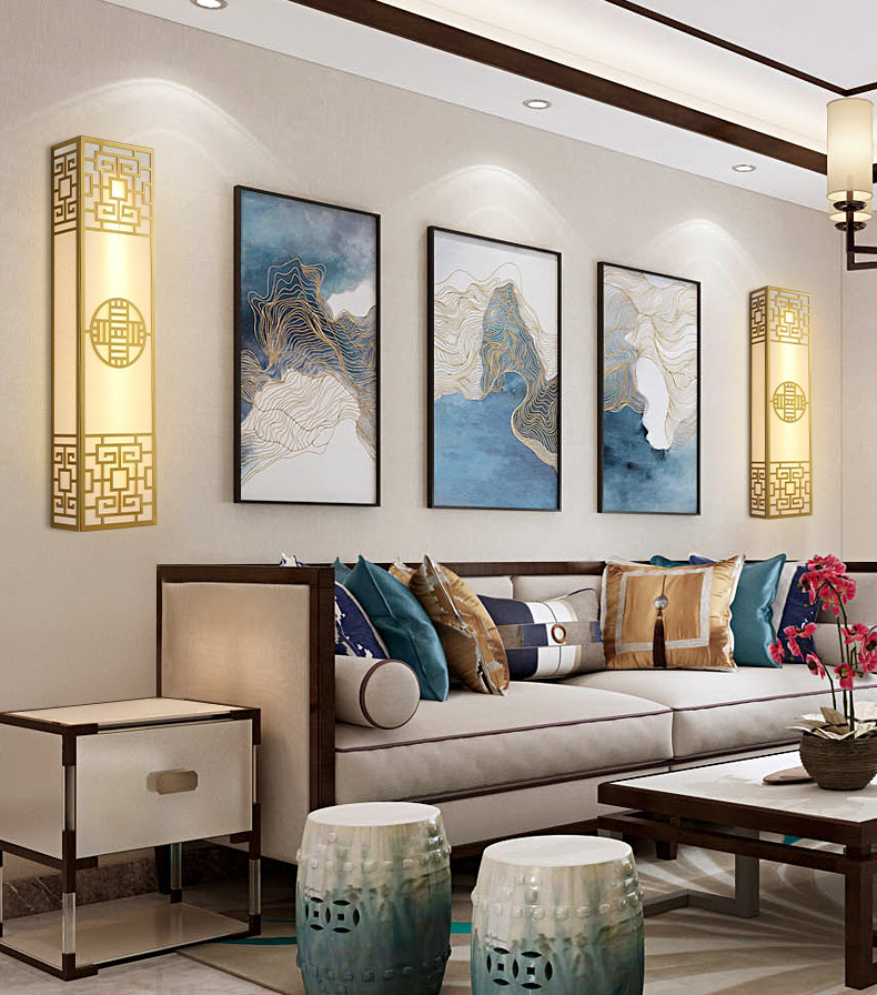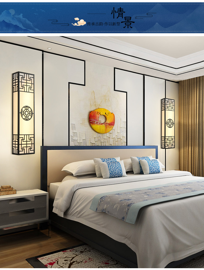 새로운 중국 현대 간단한 창조적 인 호텔 거실 침실 침대 옆 통로 계단 발코니 배경 벽 램프