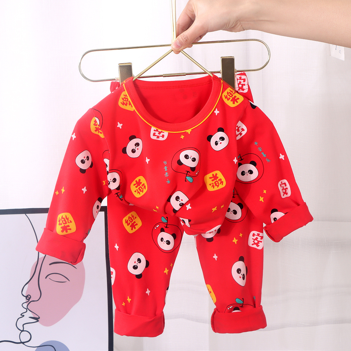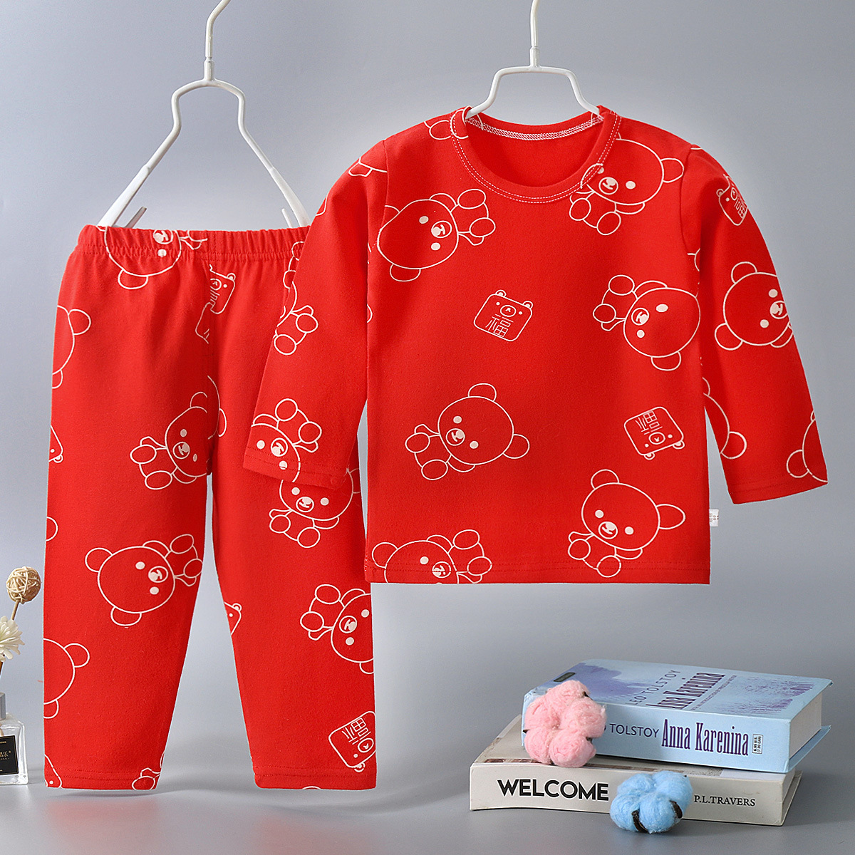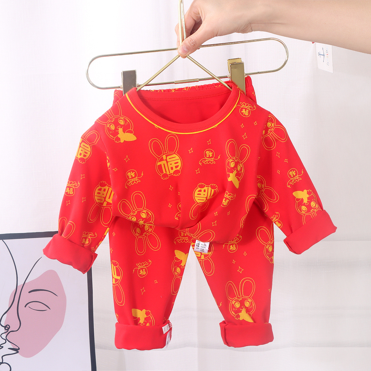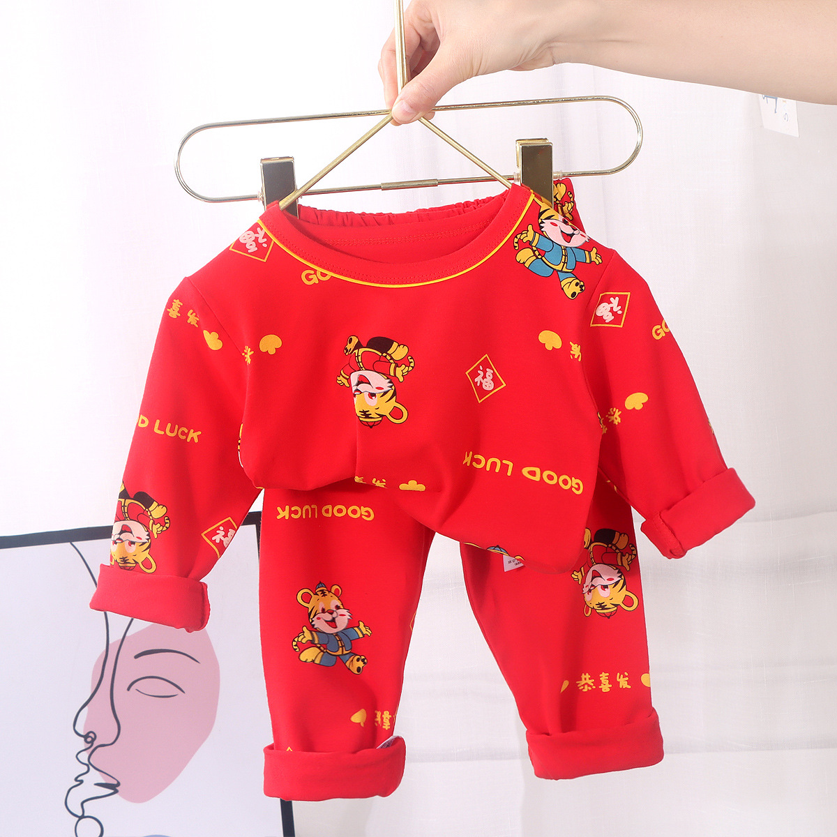 어린이 새해 축제 큰 빨간 소년과 소녀 가을 옷 긴 존스 세트 속옷 유아 따뜻한 옷 이 인생 년
