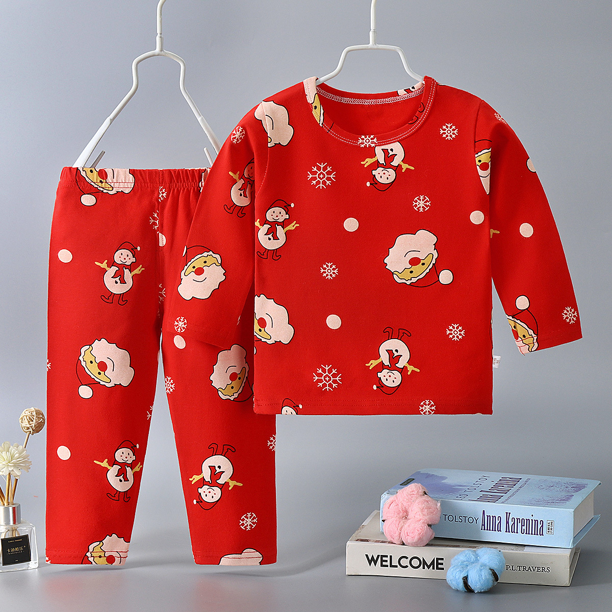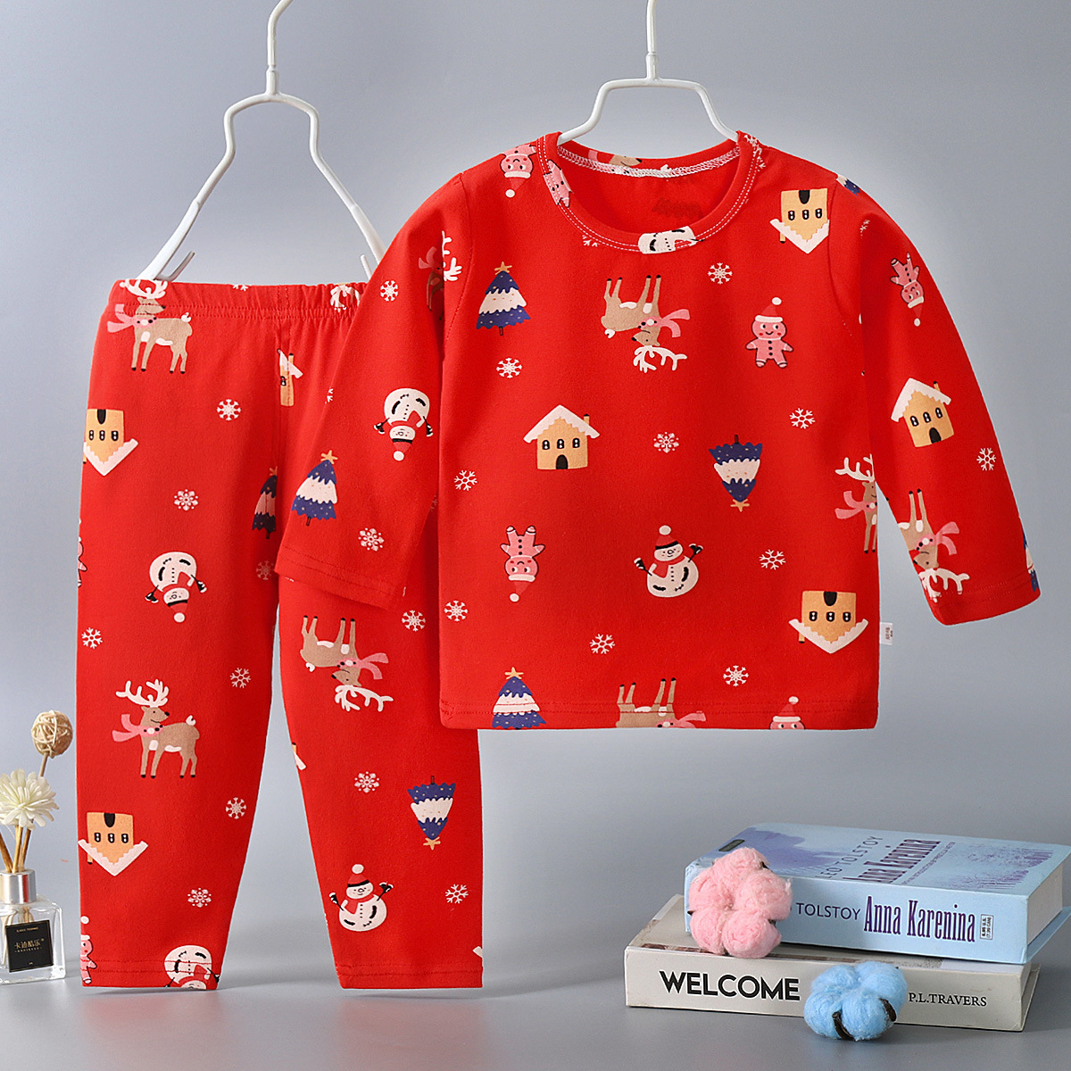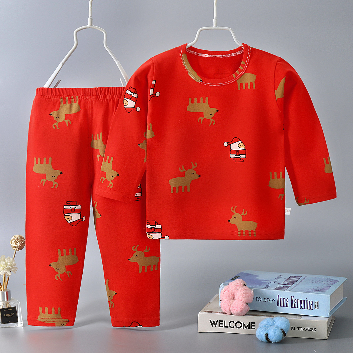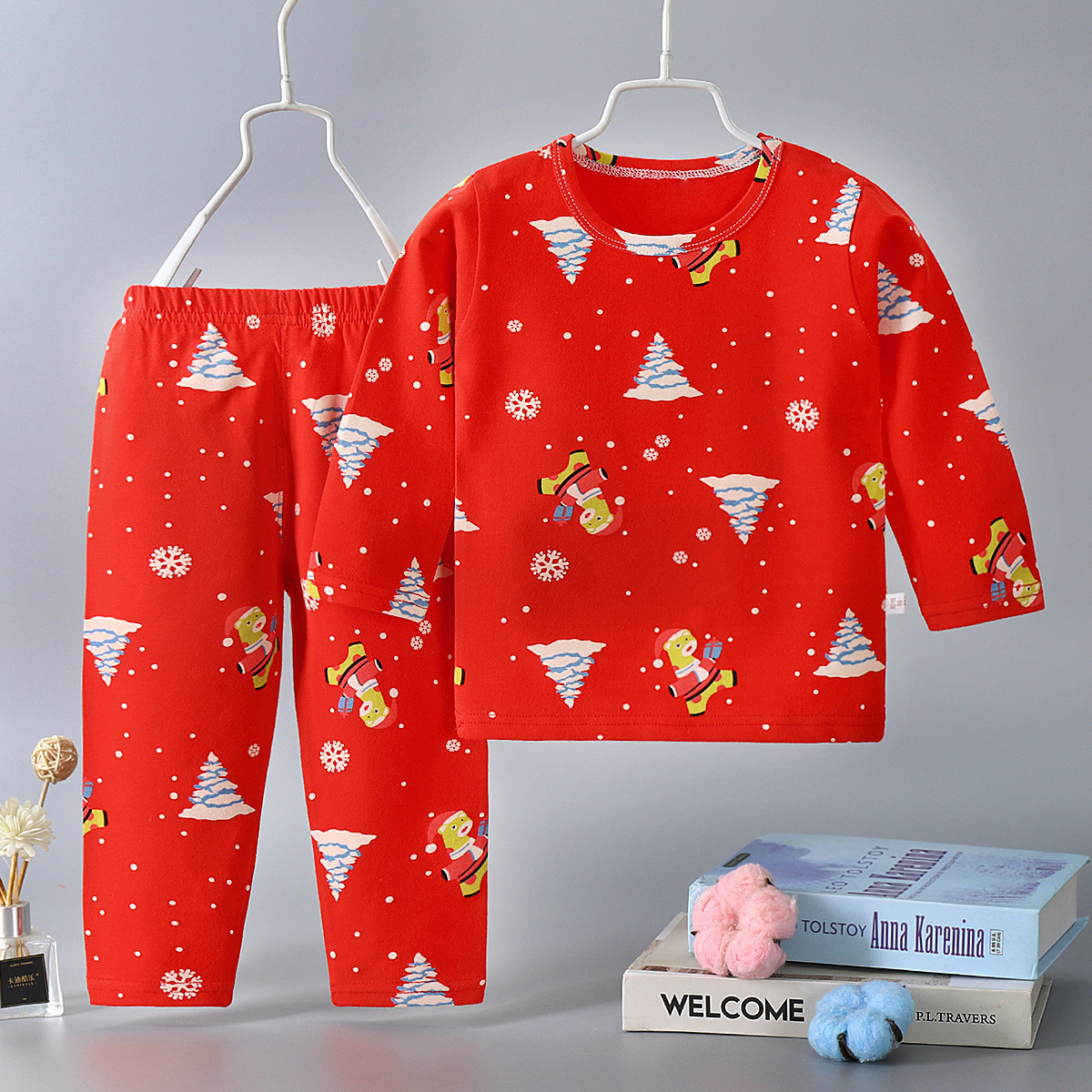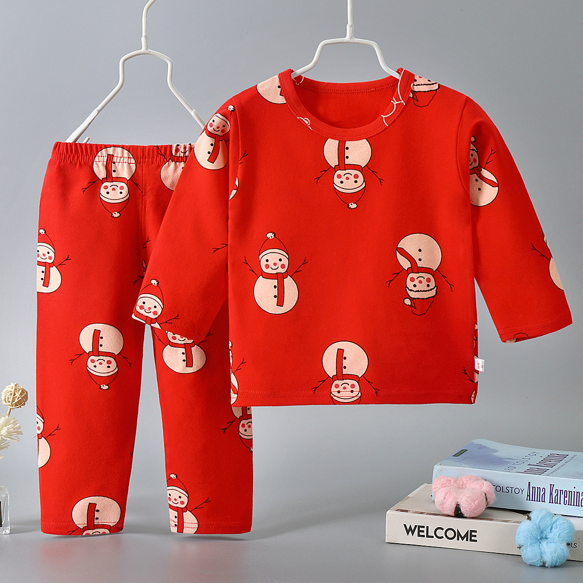 어린이 새해 축제 큰 빨간 소년과 소녀 가을 옷 긴 존스 세트 속옷 유아 따뜻한 옷 이 인생 년