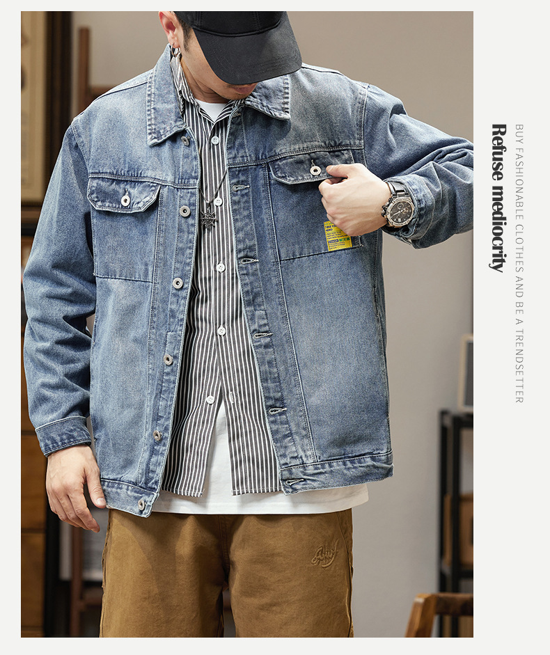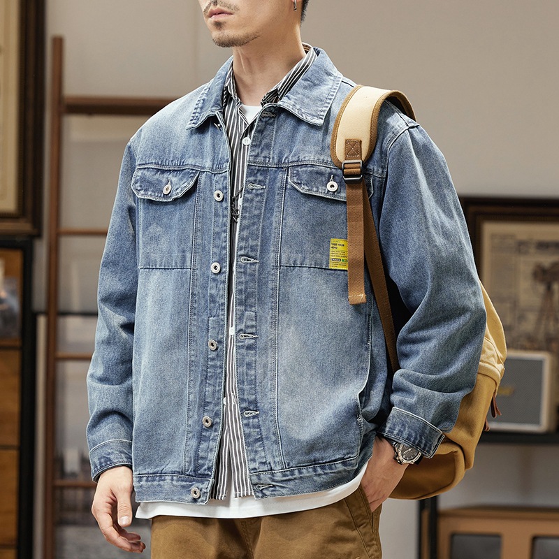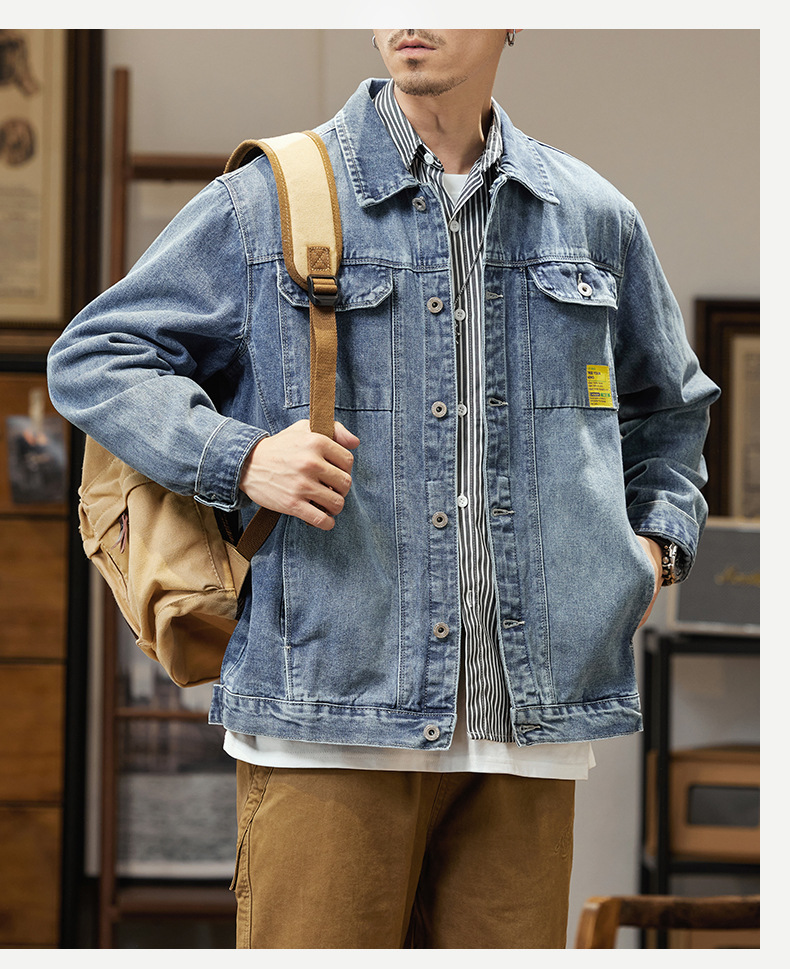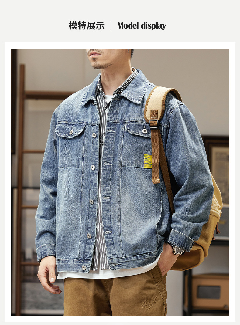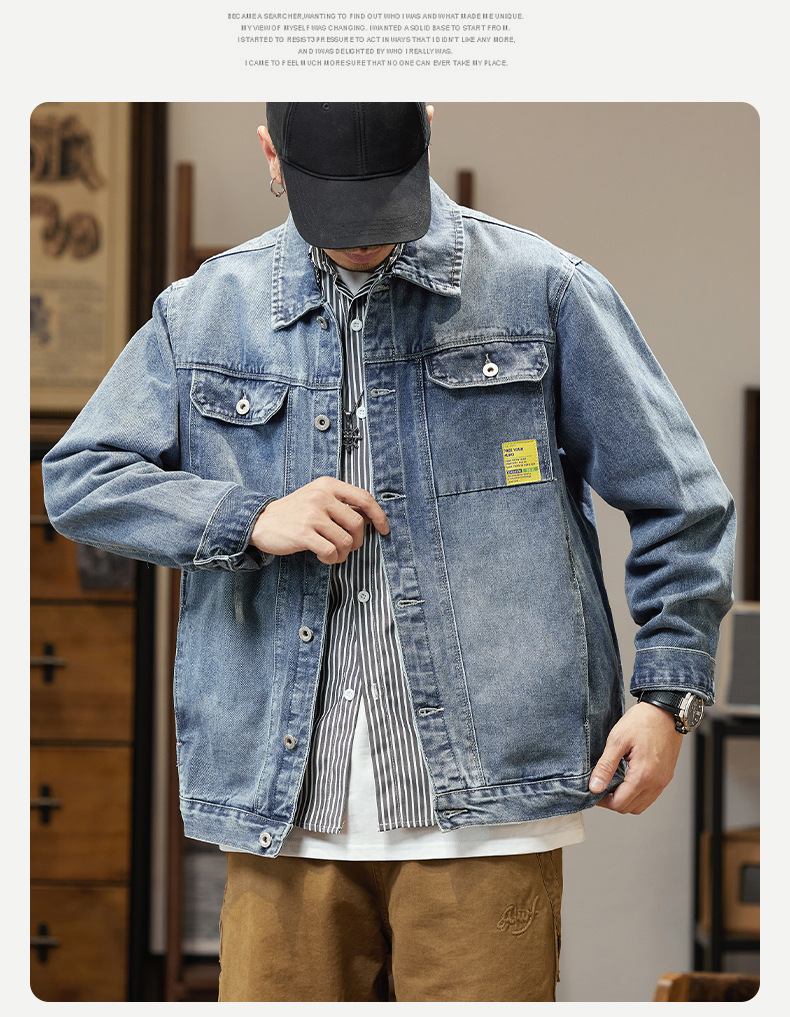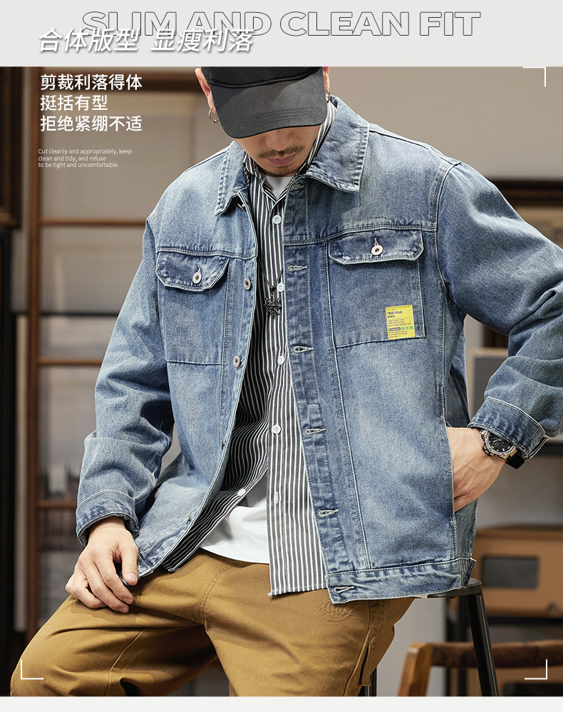 남자의 데님 재킷 초대형 특대형 재킷 유행 통통한 봄과 가을 탑 청소년 느슨한 재킷 탄성스토어 가기