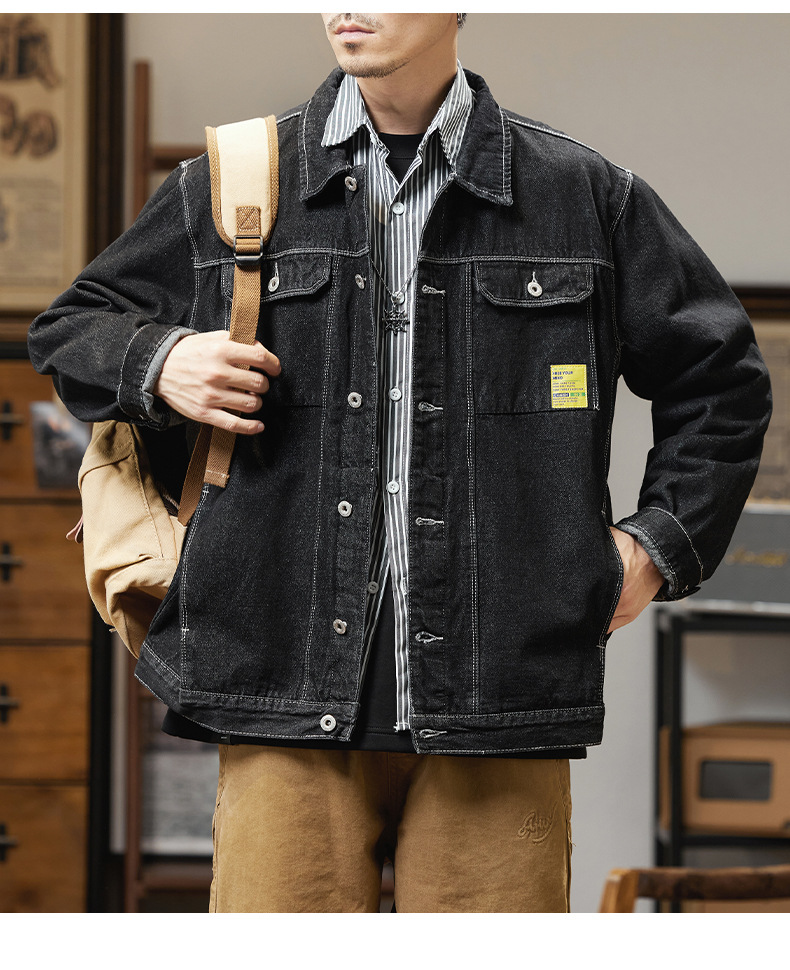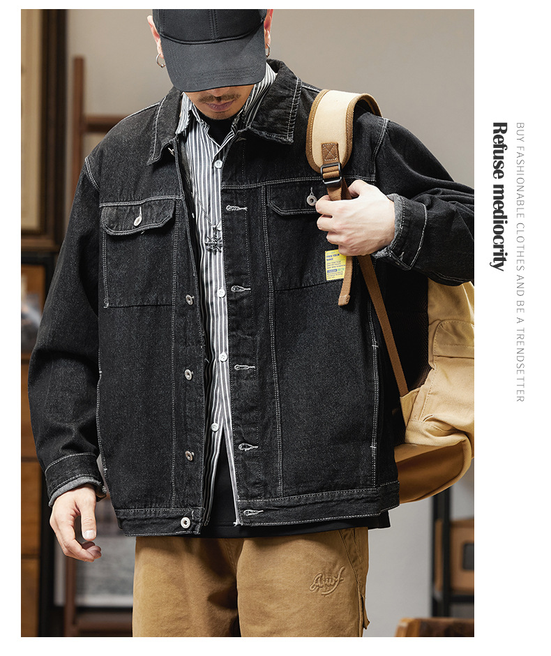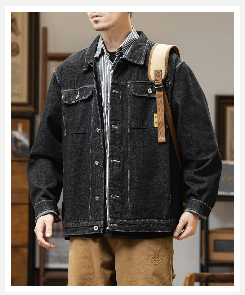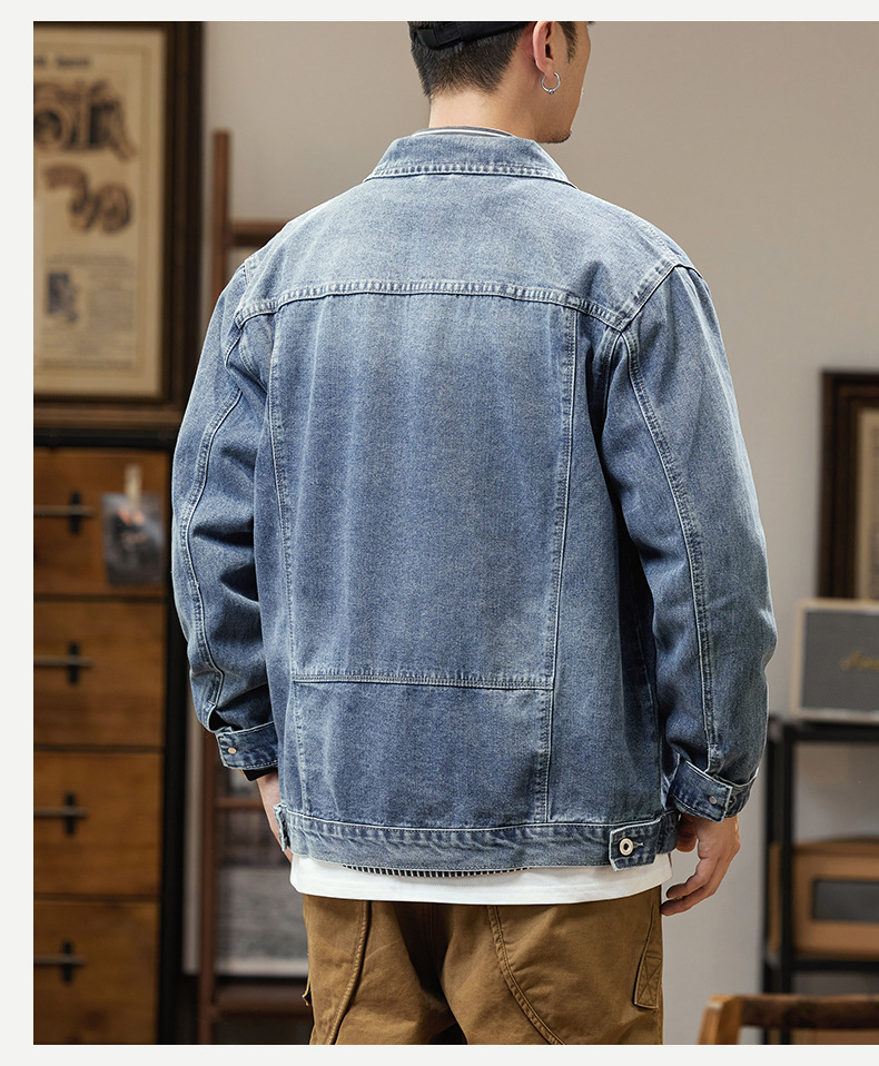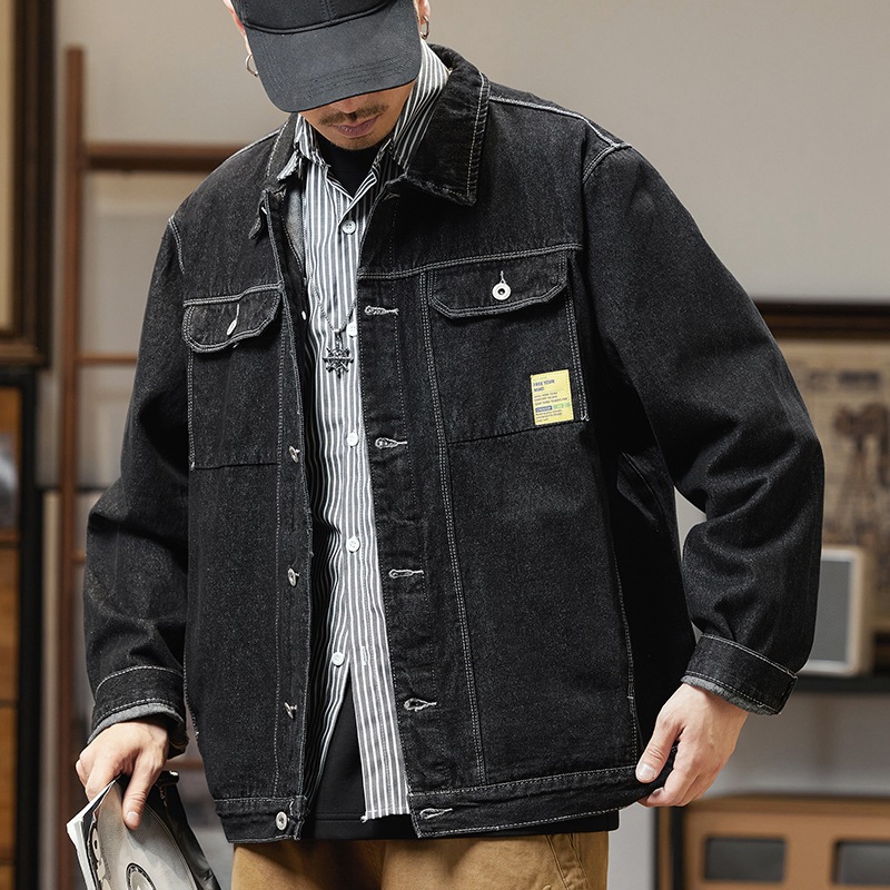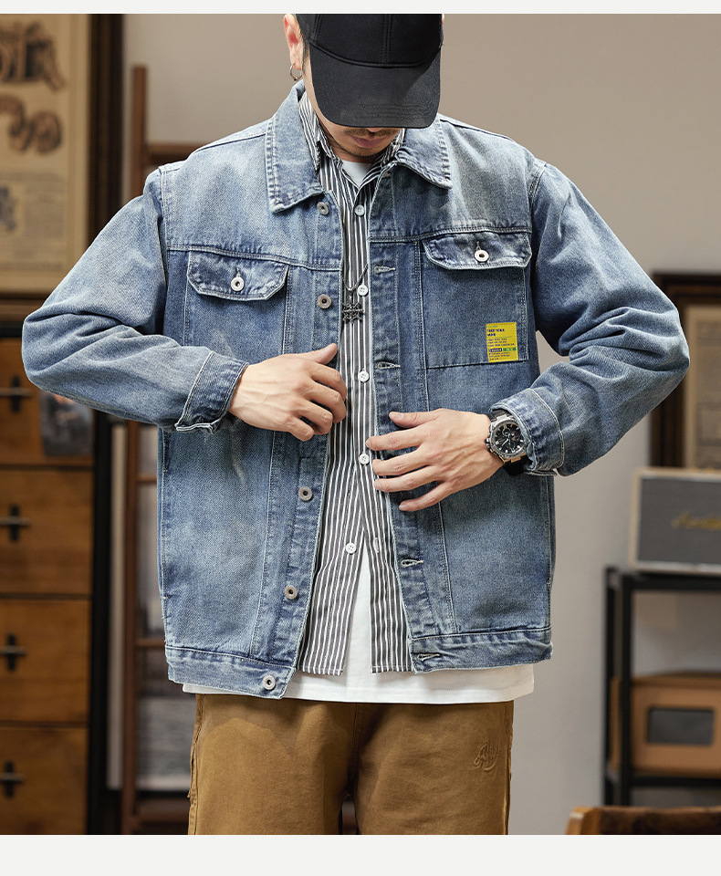 남자의 데님 재킷 초대형 특대형 재킷 유행 통통한 봄과 가을 탑 청소년 느슨한 재킷 탄성스토어 가기