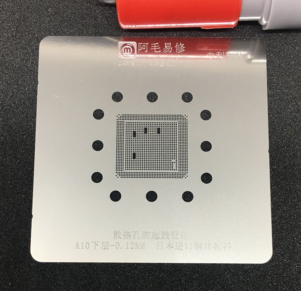 针对这个问题,阿毛易修首创设计了一款散热孔防鼓植锡网,经过测试和使用证明,