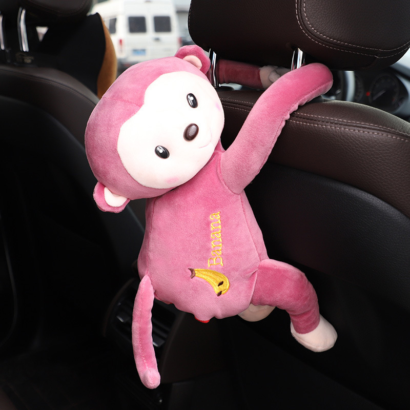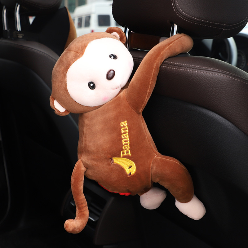 새로운 자동차 티슈 백 크리 에이 티브 귀여운 가죽 원숭이 플러시 교수형 자동차 종이 상자 자동차 티슈 백